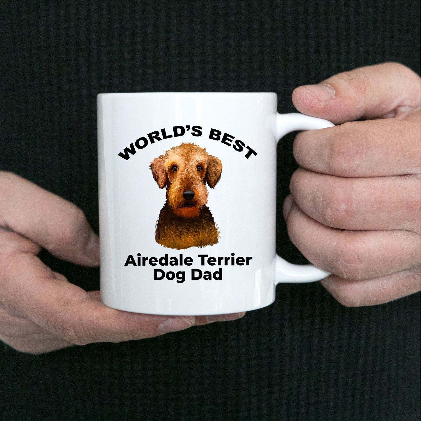 Airedale Terrier Best Dog Dad Two Tone and White Ceramic Coffee Mug