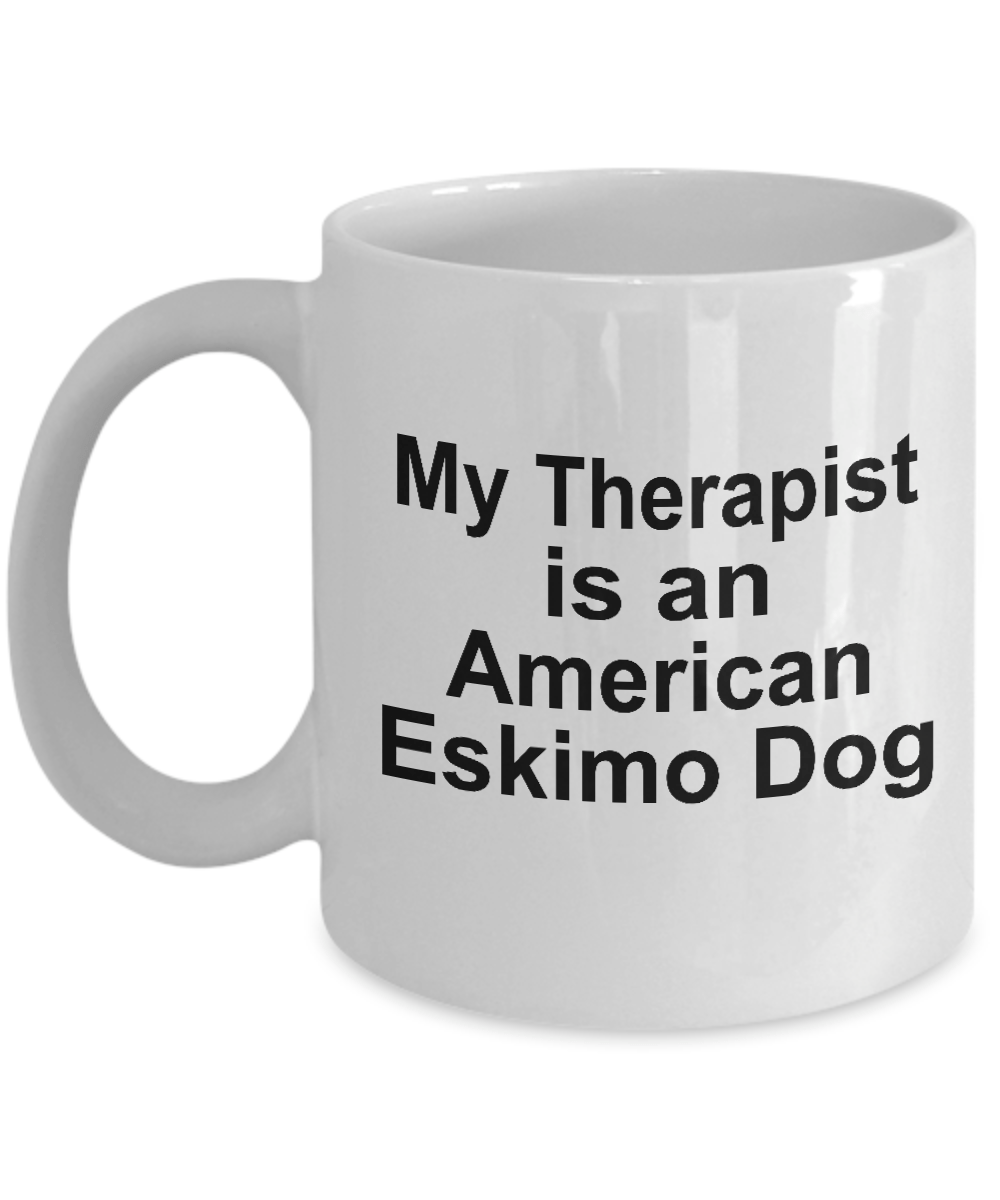 These American Eskimo Dog Therapist Mugs come in both 11 and 15 ounces which is great for coffee, tea, hot chocolate, milk or any other beverage and has a large C-handle that is easy to grip. The design is printed on both sides so is a suitable gift for right as well as left handed people.