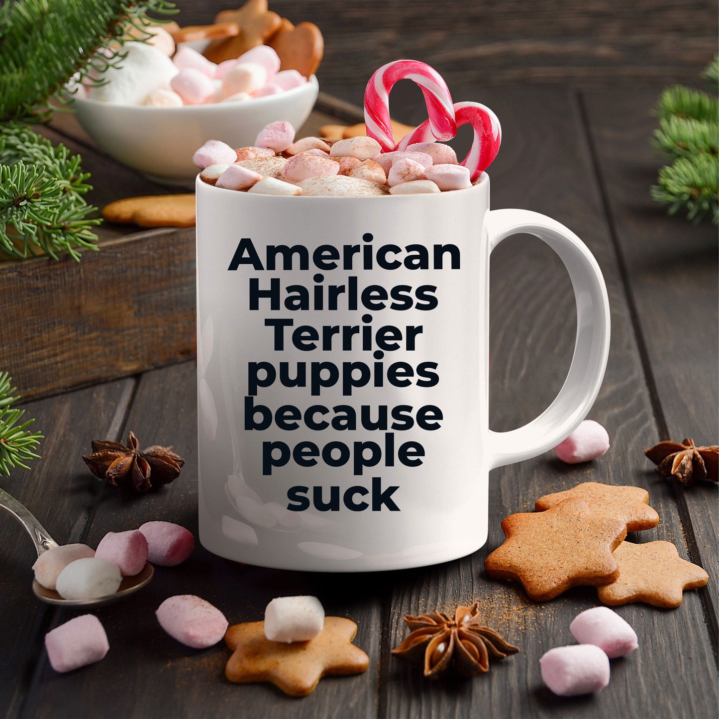 American Hairless dog lover coffee mug - American Hairless Puppies because people suck