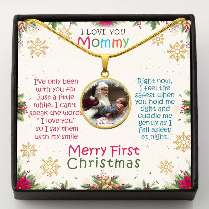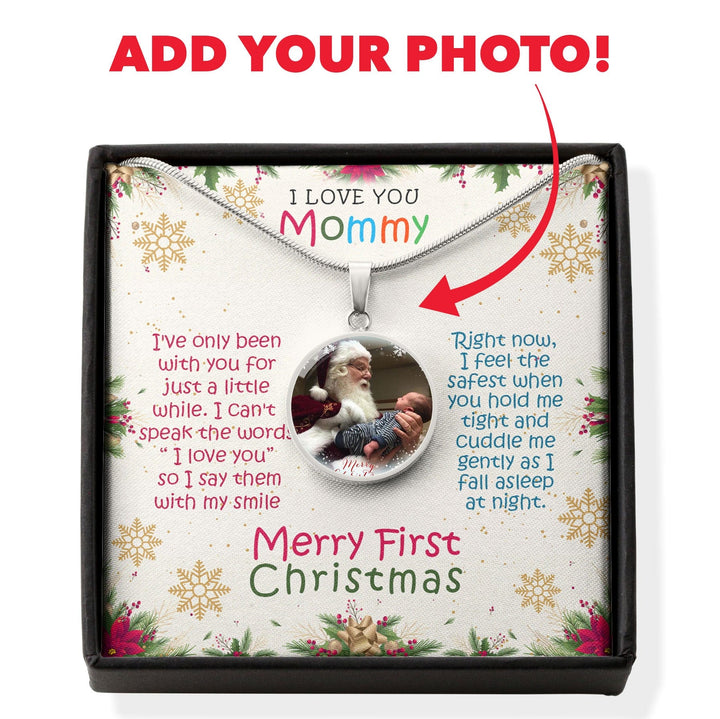 Baby's First Christmas Personalized Photo Pendant Necklace can be personalized with your baby's photo, an ultrasound picture, picture with Santa, Baby's first steps or any photo you upload