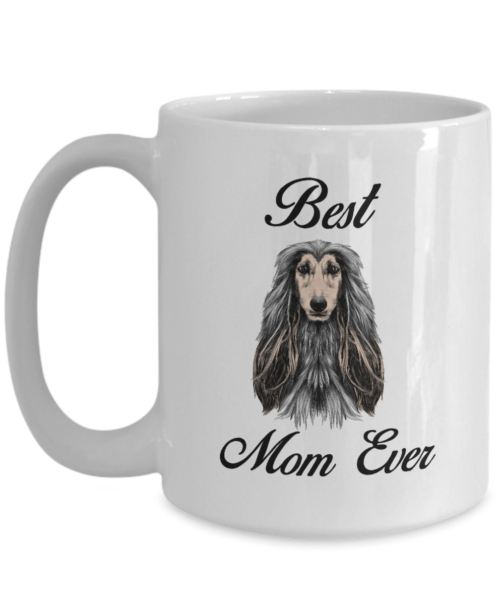 These Best Afghan Hound Mom ceramic mugs come in both 11 and 15 ounces which is great for coffee, tea, hot chocolate, milk or any beverage. They have a large C shaped handle that is easy to grip. The custom design is printed on both sides so it is a suitable gift for right as well as left handed people.