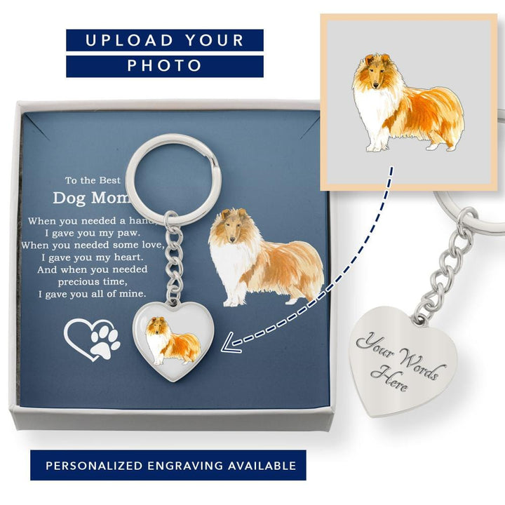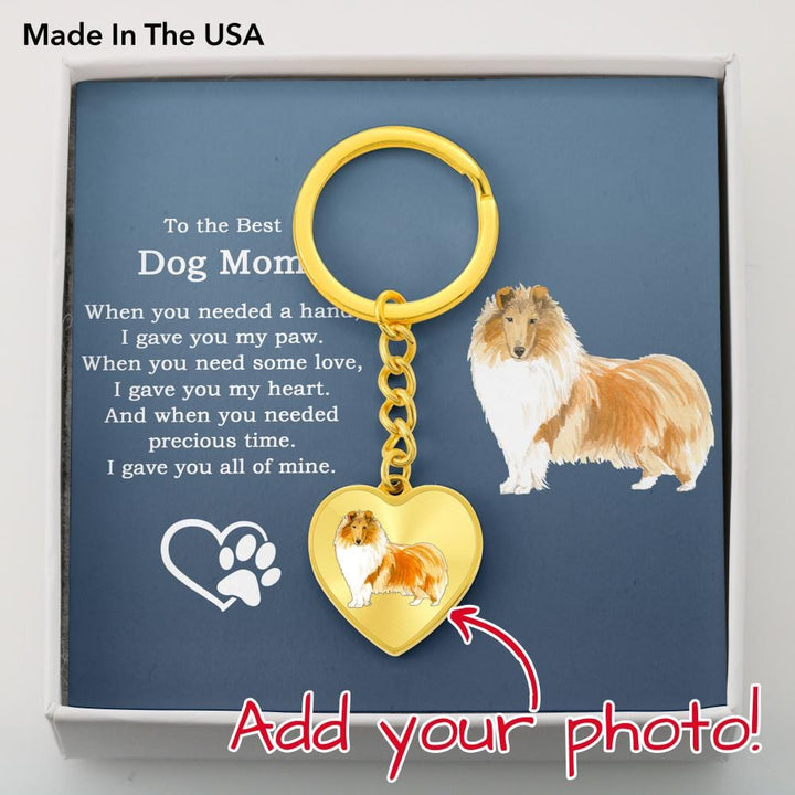 Best Dog Mom Remembrance Custom Photo Heart Keychain features a custom photo upload on the keychain and message card. Can be personalized with the Pet's name as well. ( I also have the present tense message for current dog lovers.)