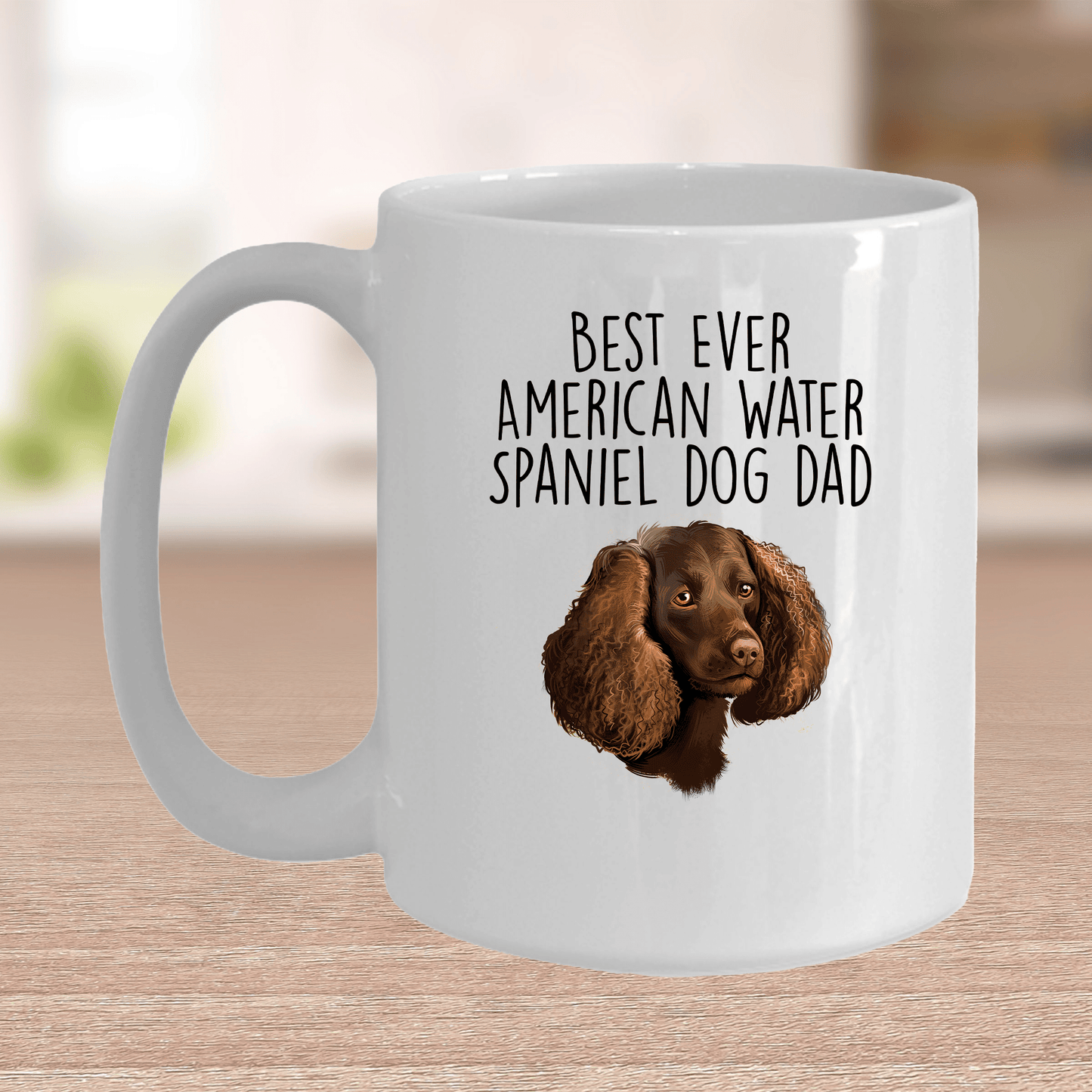 Best Ever American Water Spaniel Dog Dad Ceramic Coffee Mugs come in 11 and 15 ounces, great for coffee, tea, hot chocolate, milk, or any other beverage.