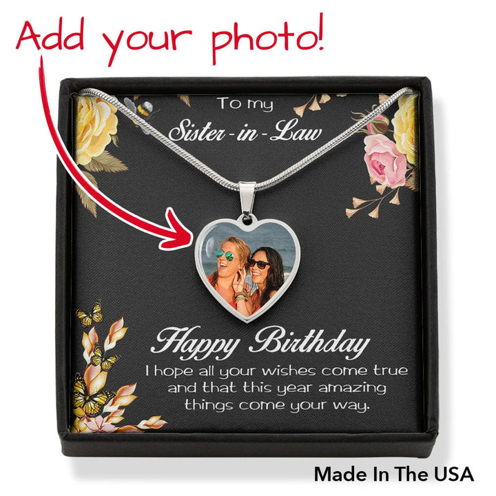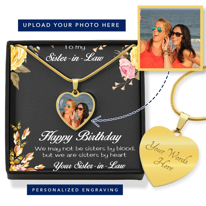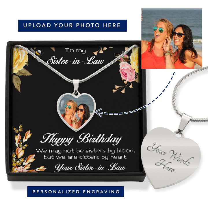 Birthday Gift for Sister-in-Law Custom Photo Heart Pendant Necklace with optional engraved back