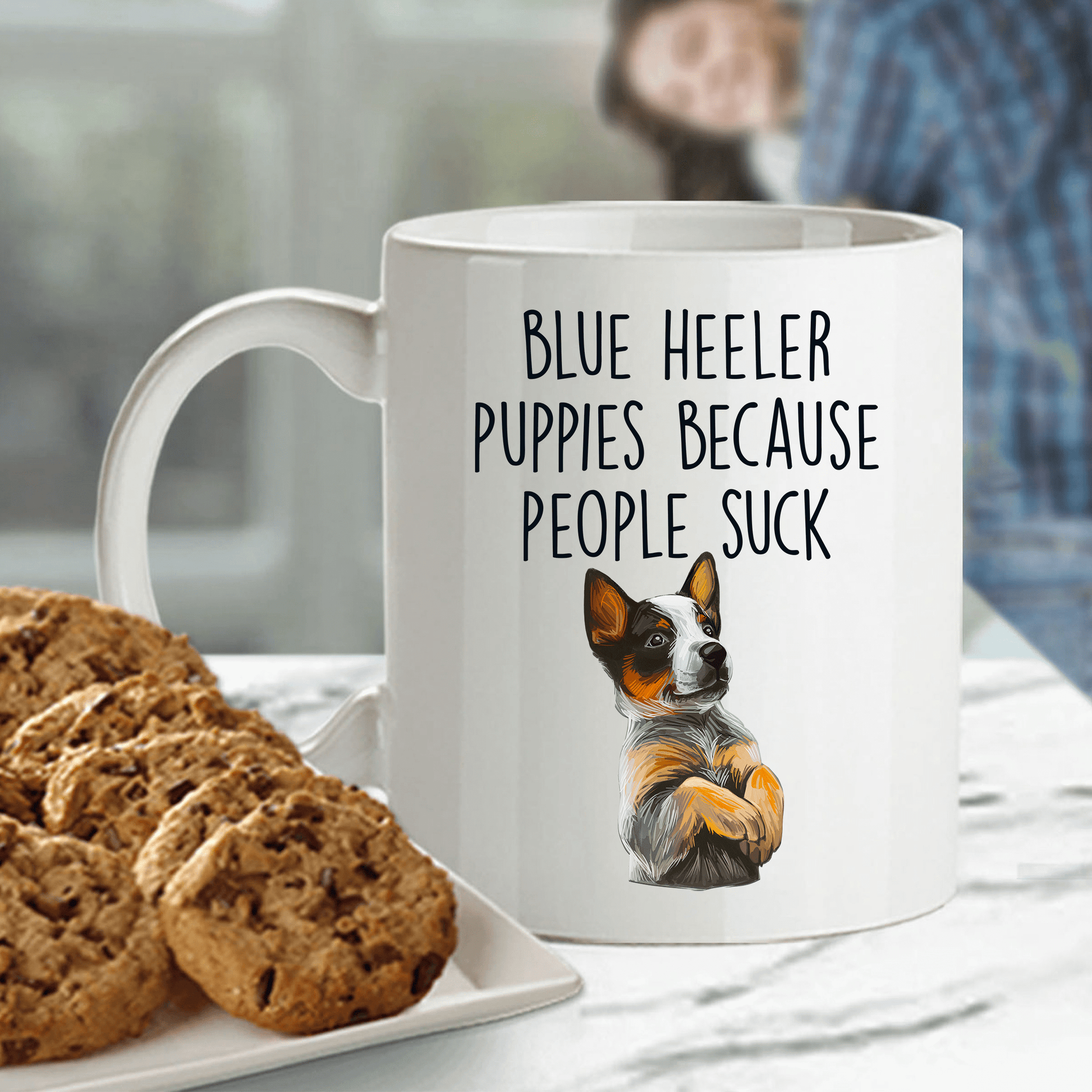 Blue Heeler Puppies Because People Suck Funny Ceramic Coffee Mug