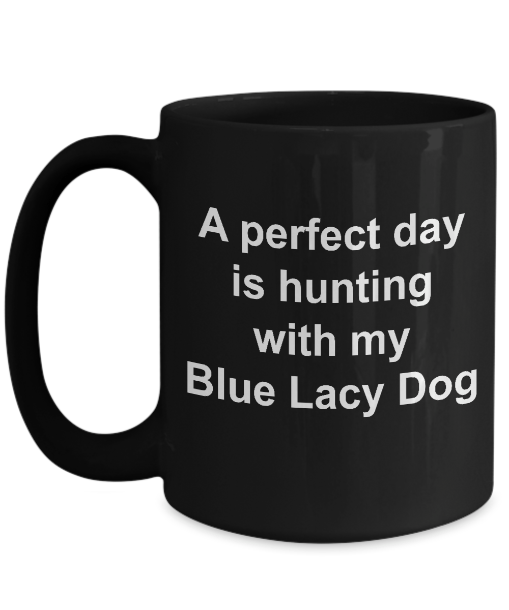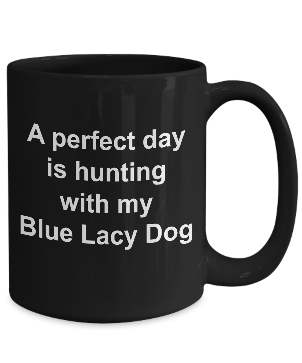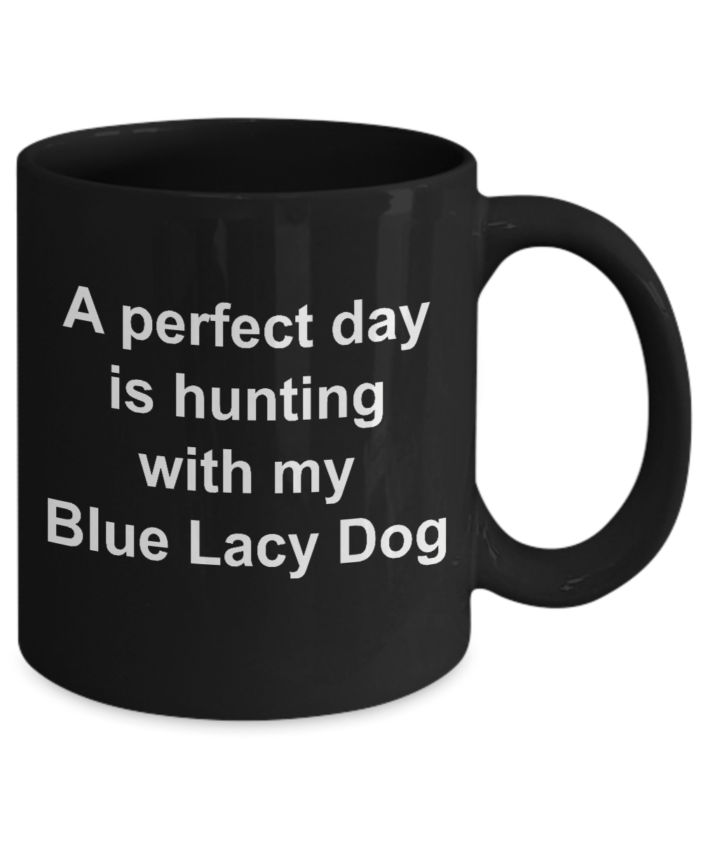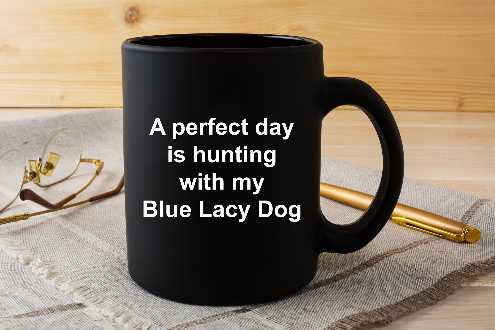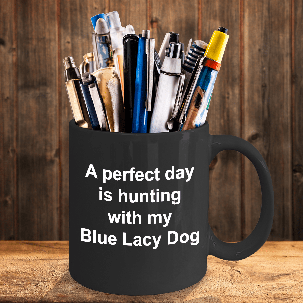 Blue Lacy Dog Gift Perfect Day is Hunting Black Ceramic Coffee Mug