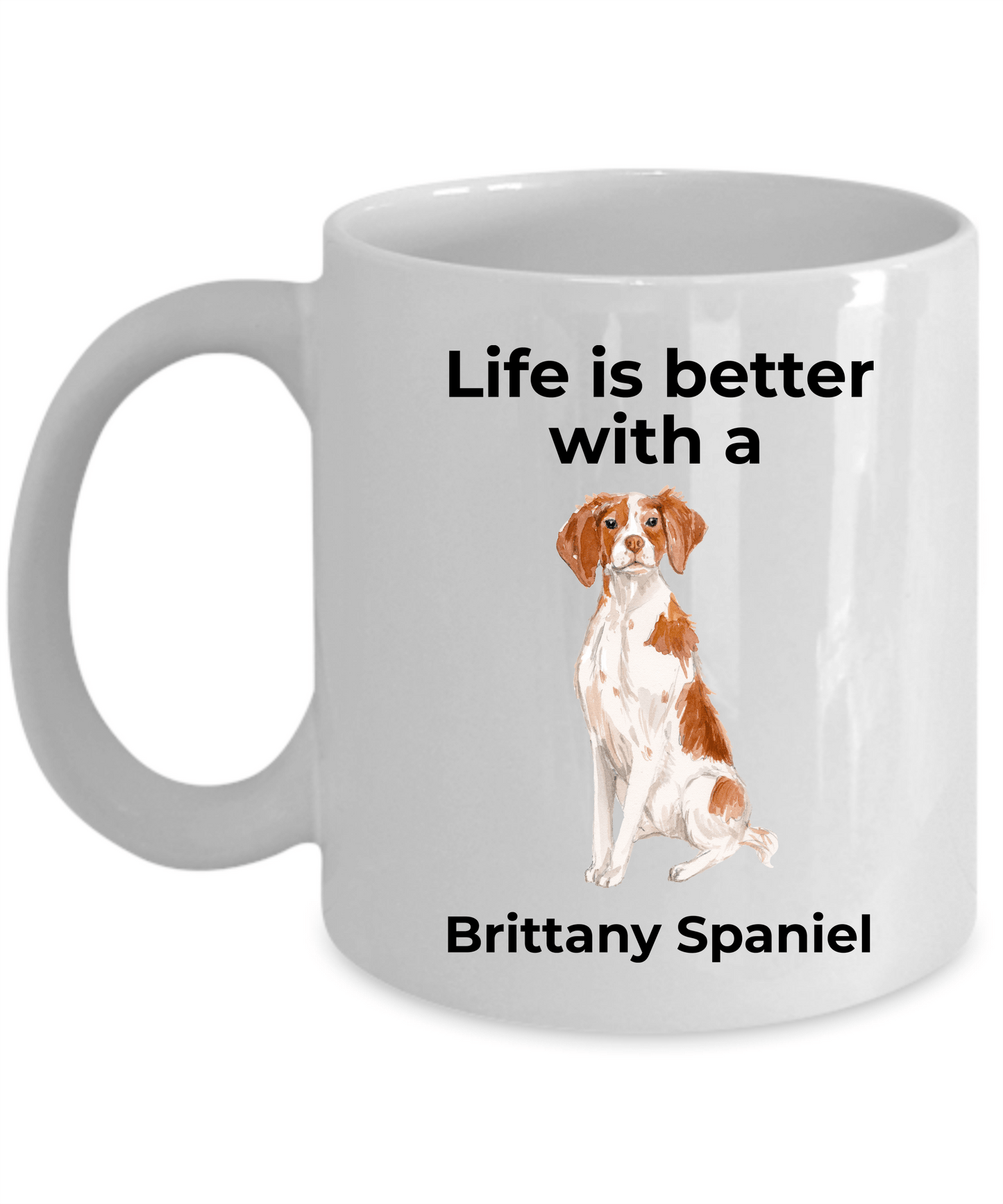 These Brittany Spaniel ceramic mugs come in both 11 and 15 ounces which is great for coffee, tea, hot chocolate, milk or any beverage.The two tones mugs only come in the 11 oz size.