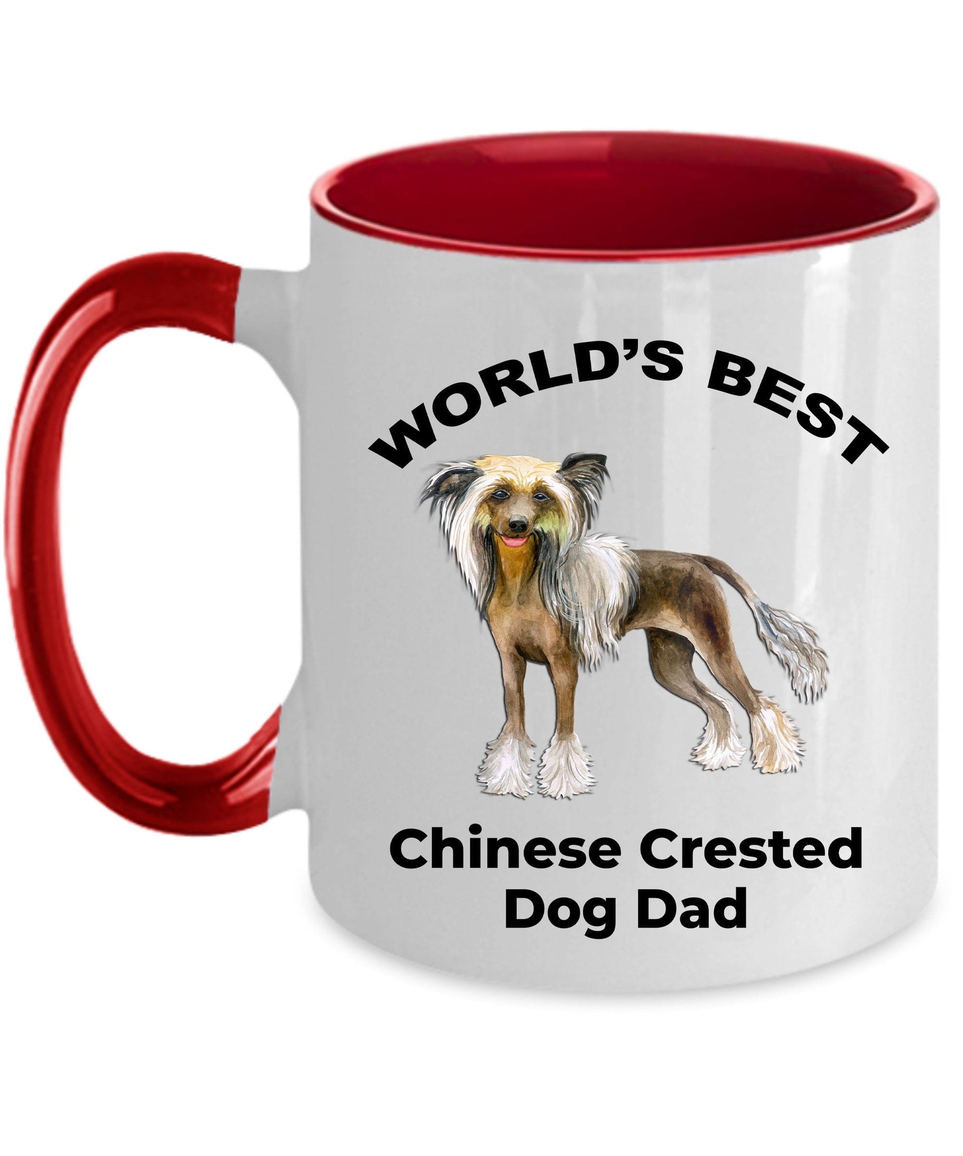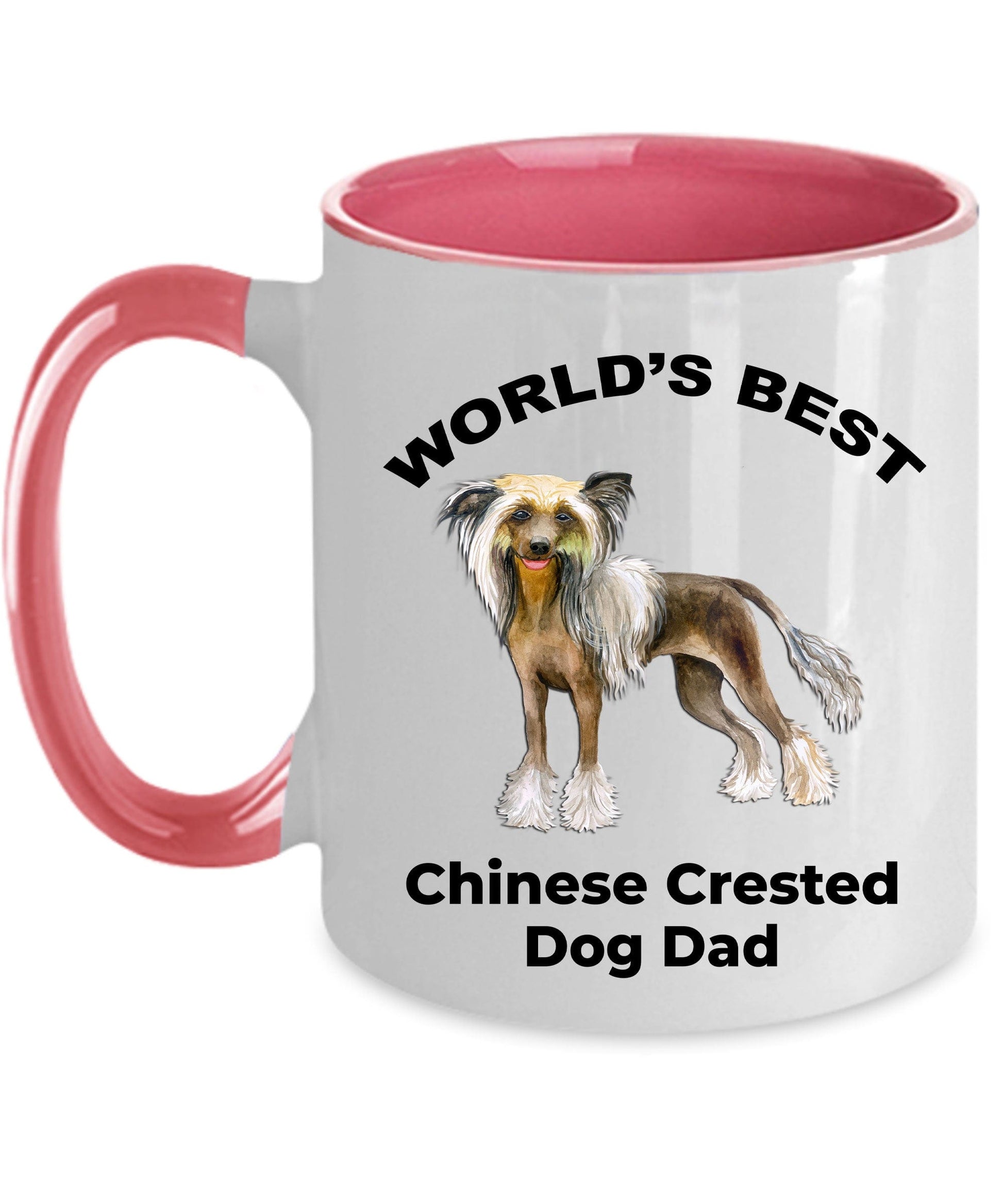 Chinese Crested World's Best Dog Dad ceramic coffee mug. These ceramic mugs come in both 11 and 15 ounces which is great for coffee, tea, hot chocolate, milk, or any other beverage. The two tones mugs are available in black, red, navy, and pink. Design is also available in the 14oz travel mug and the 20oz and 30oz polar laser-etched color tumblers. Just message me if you want a different product. The design can also be personalized or changed, such as to grandma, grandpa, brother, sister, etc. Just message me if you want a different product or customization.