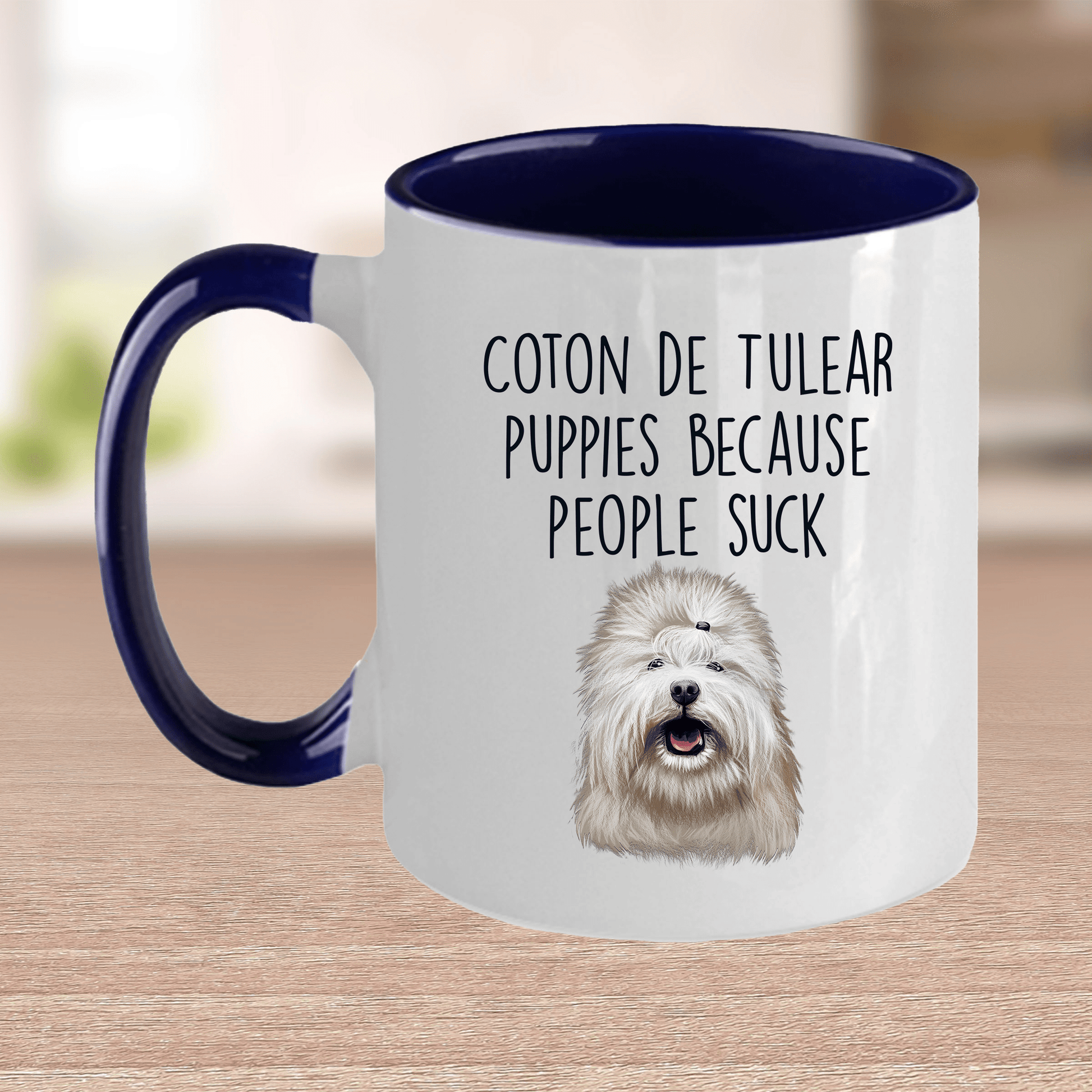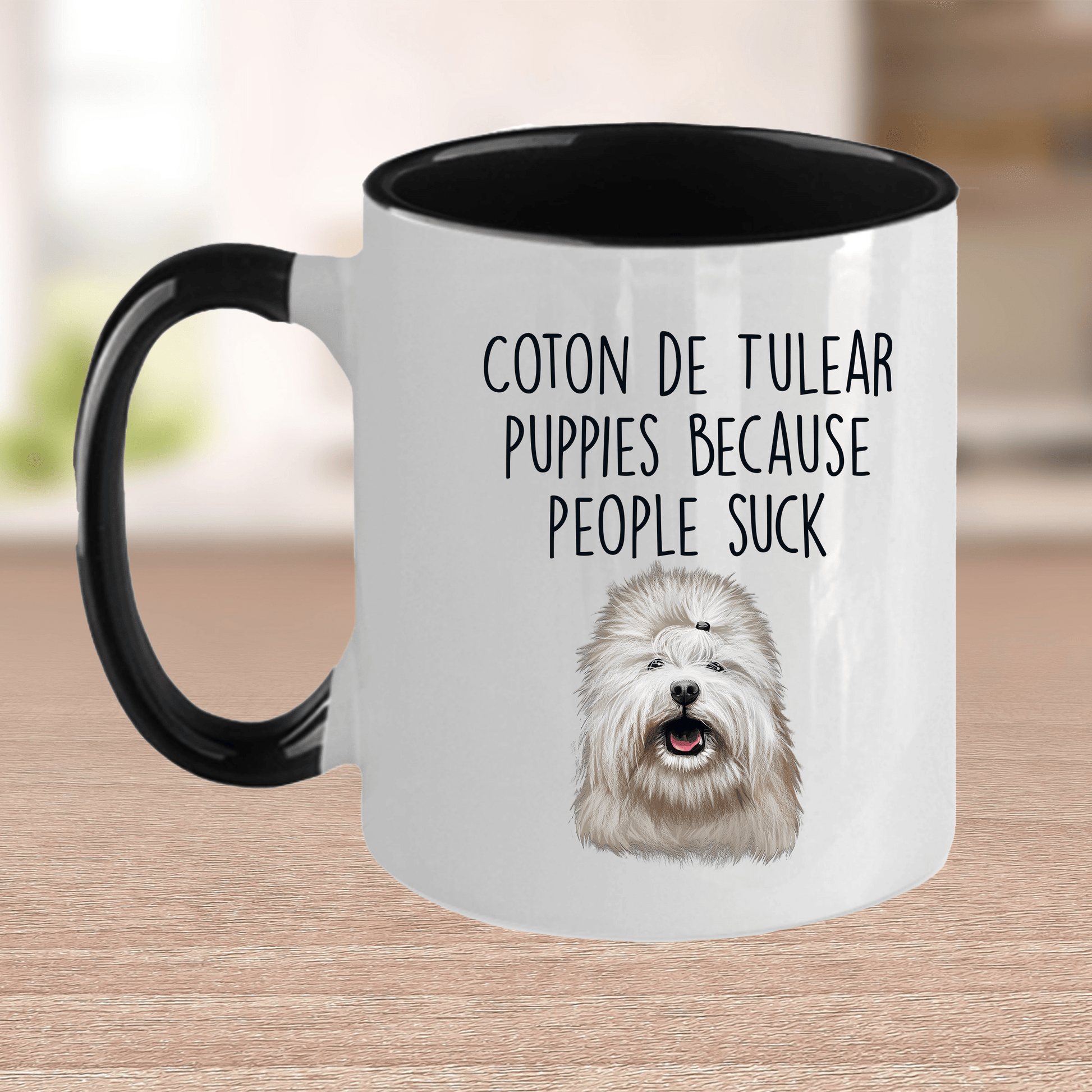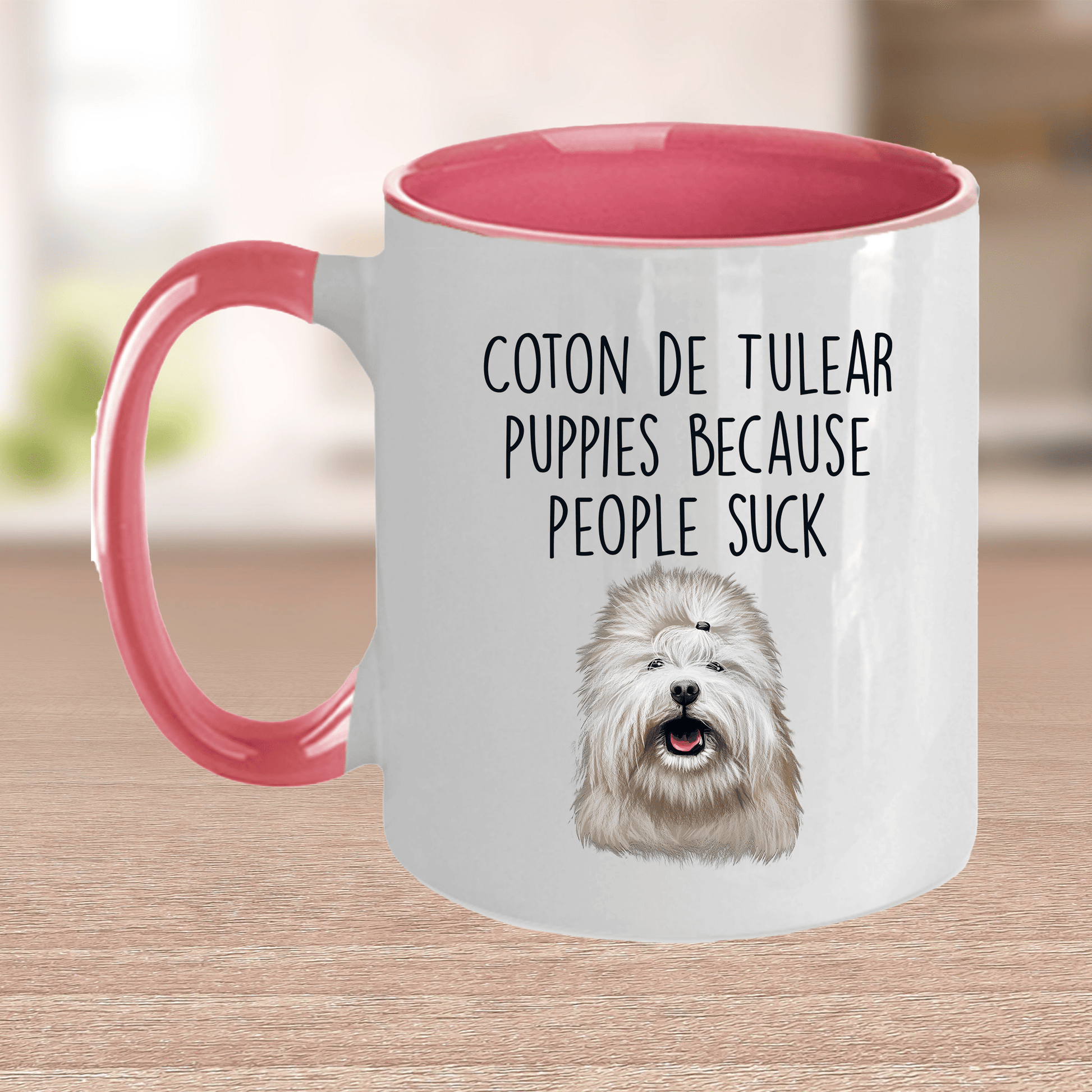 Coton de Tulear Puppies Because People Suck Funny ceramic mugs come in both 11 and 15 ounces which is great for coffee, tea, hot chocolate, milk, or any other beverage. The two tones mugs are available in black, red, navy, and pink. Design is also available in the 14oz travel mug.