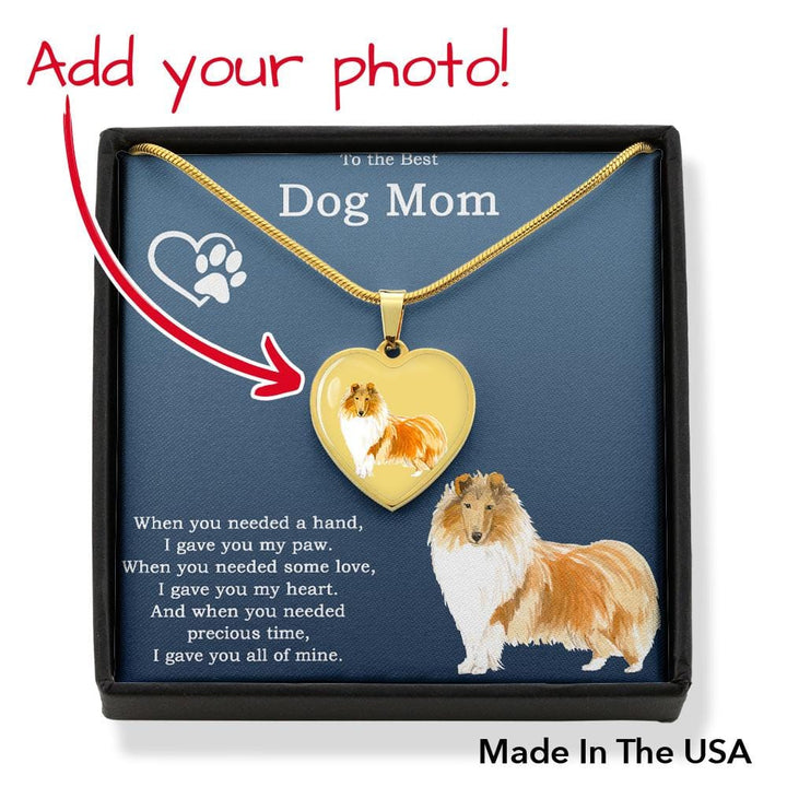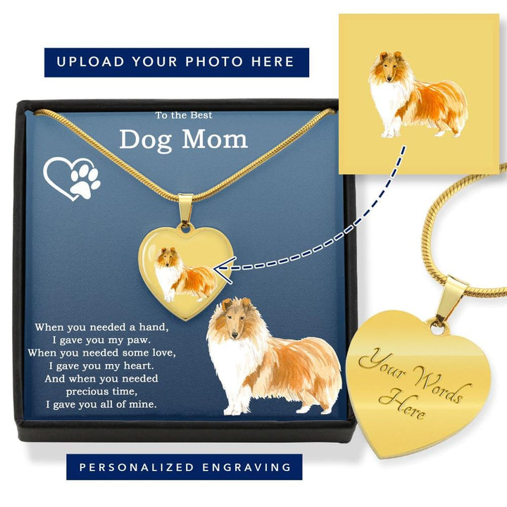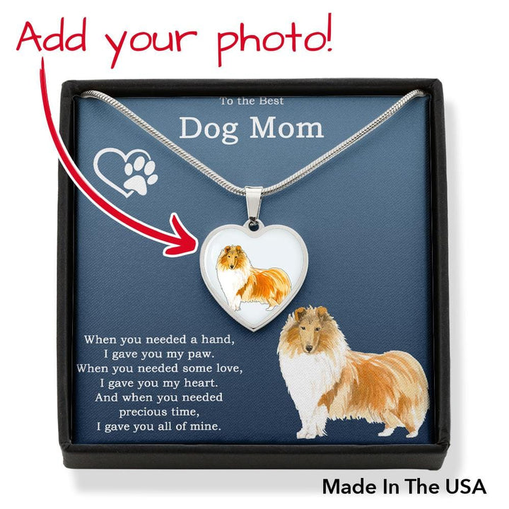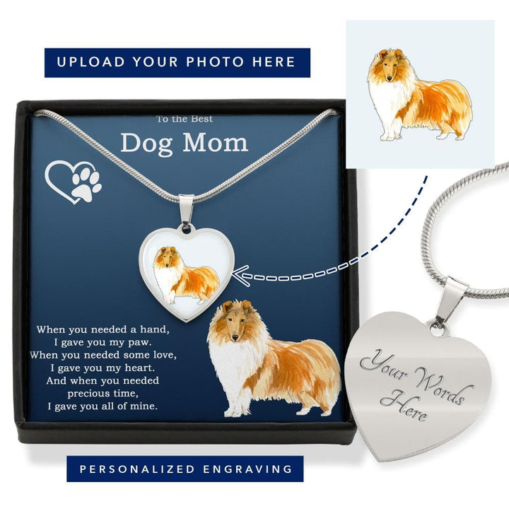 Dog Mom Remembrance Custom Photo and engraved Heart Pendant Necklace. Upload your own photo and engrave the back with special message,such as pet's name and date. This design is also available in the present tense for current dog lover's that would like a photo of their pet. This design is also available as a keychain heart and circle as well.