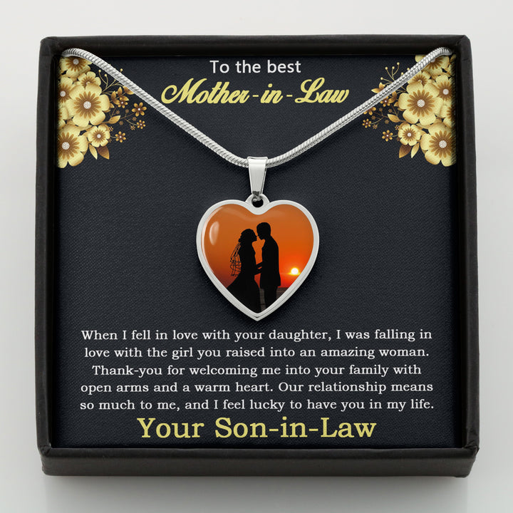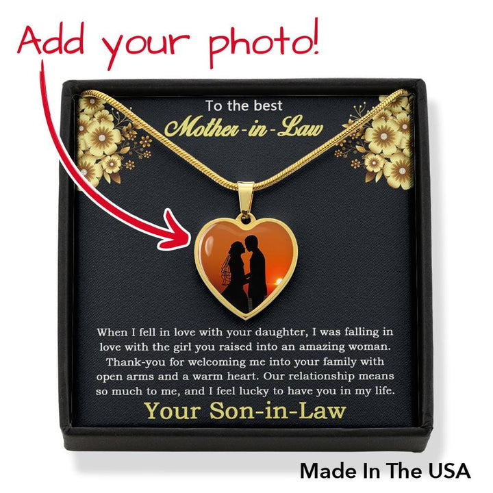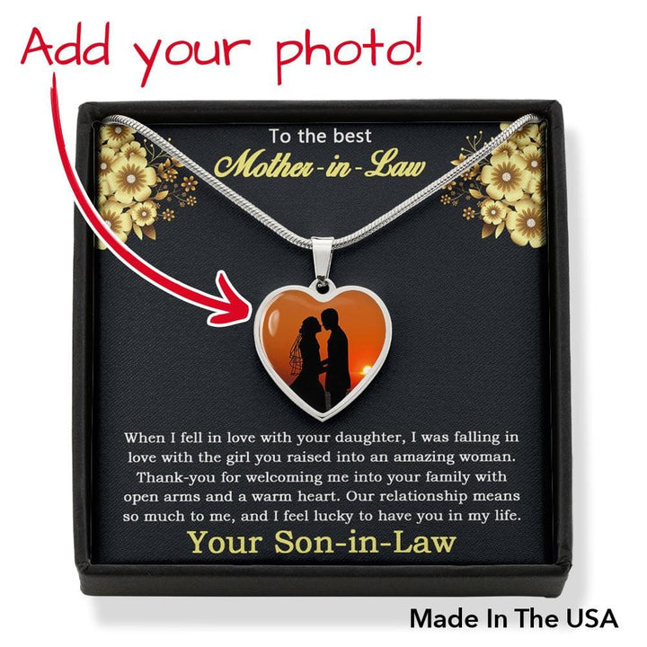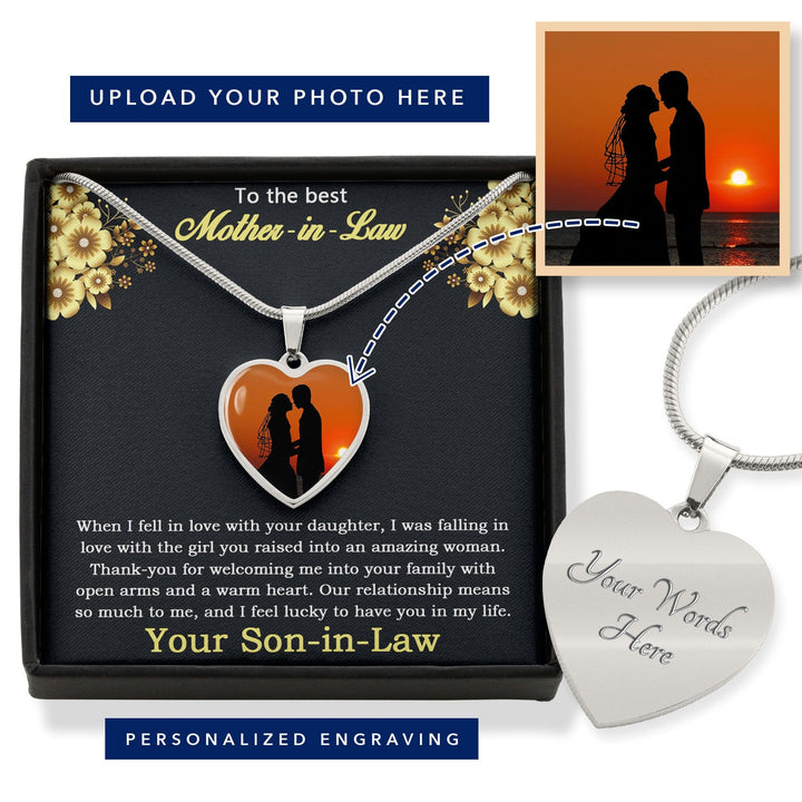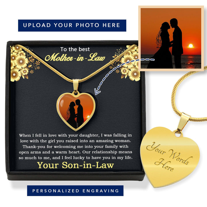 This makes the perfect gift for your Mother-in-Law from the son-in-law. Upload your own photo such as a wedding picture of you and your bride. Wonderful gift to give on your wedding day, Valentine's Day, birthday or Mother's day. This gift will melt her heart .