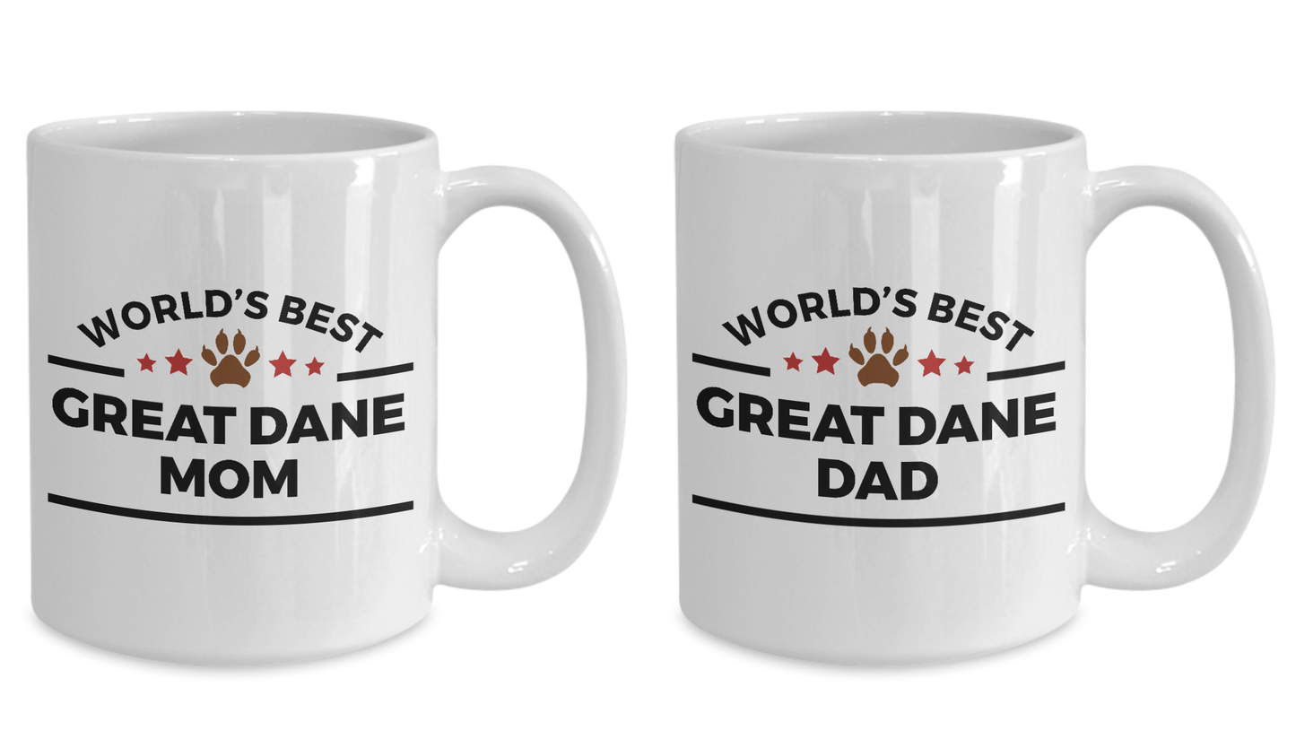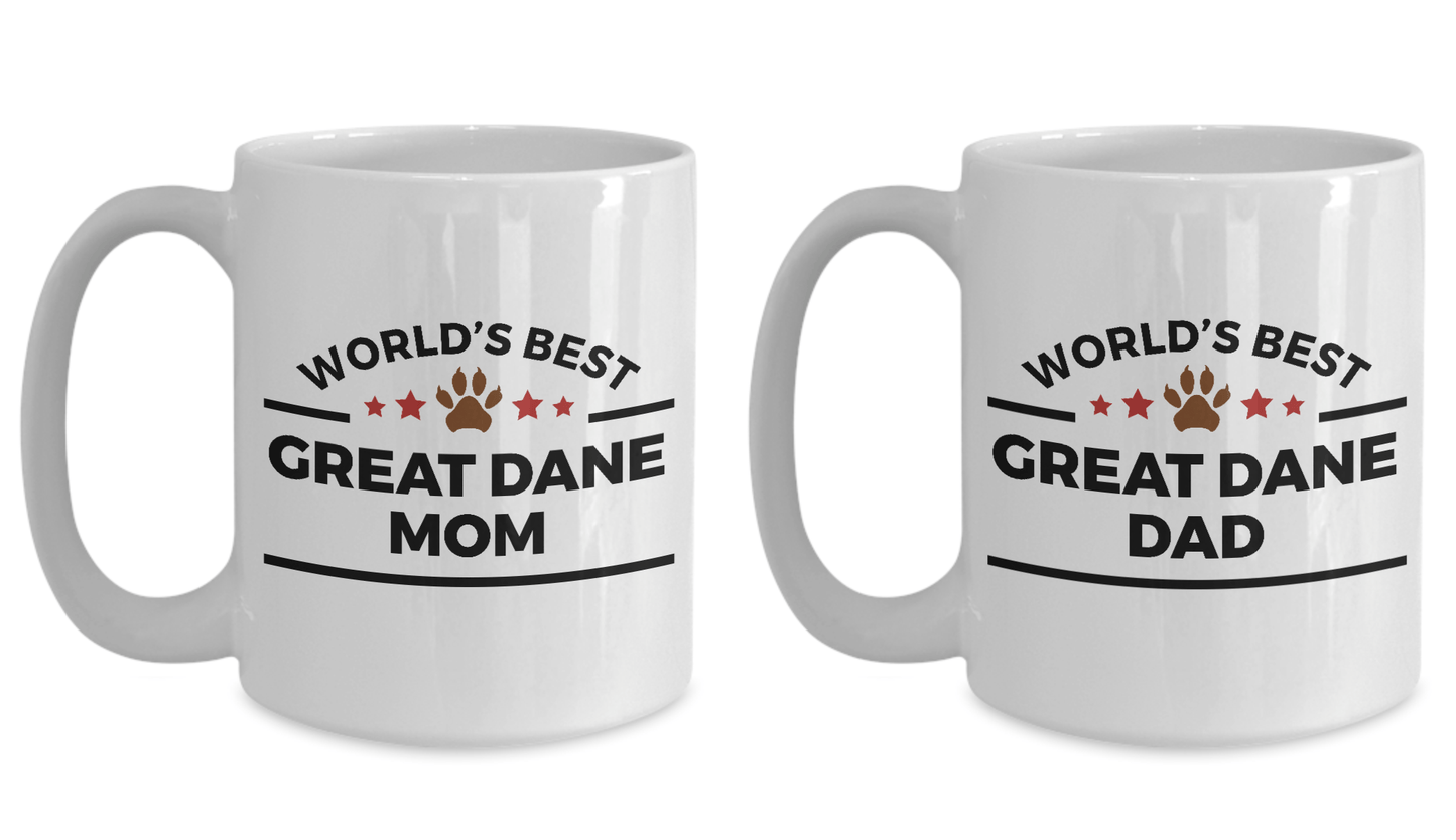 These Great Dane Dog Mom and Dad Mugs come in both 11 and 15 ounces which is great for coffee, tea, hot chocolate, milk or any other beverage and has a large C-handle that is easy to grip. The design is printed on both sides so is a suitable gift for right as well as left handed people.