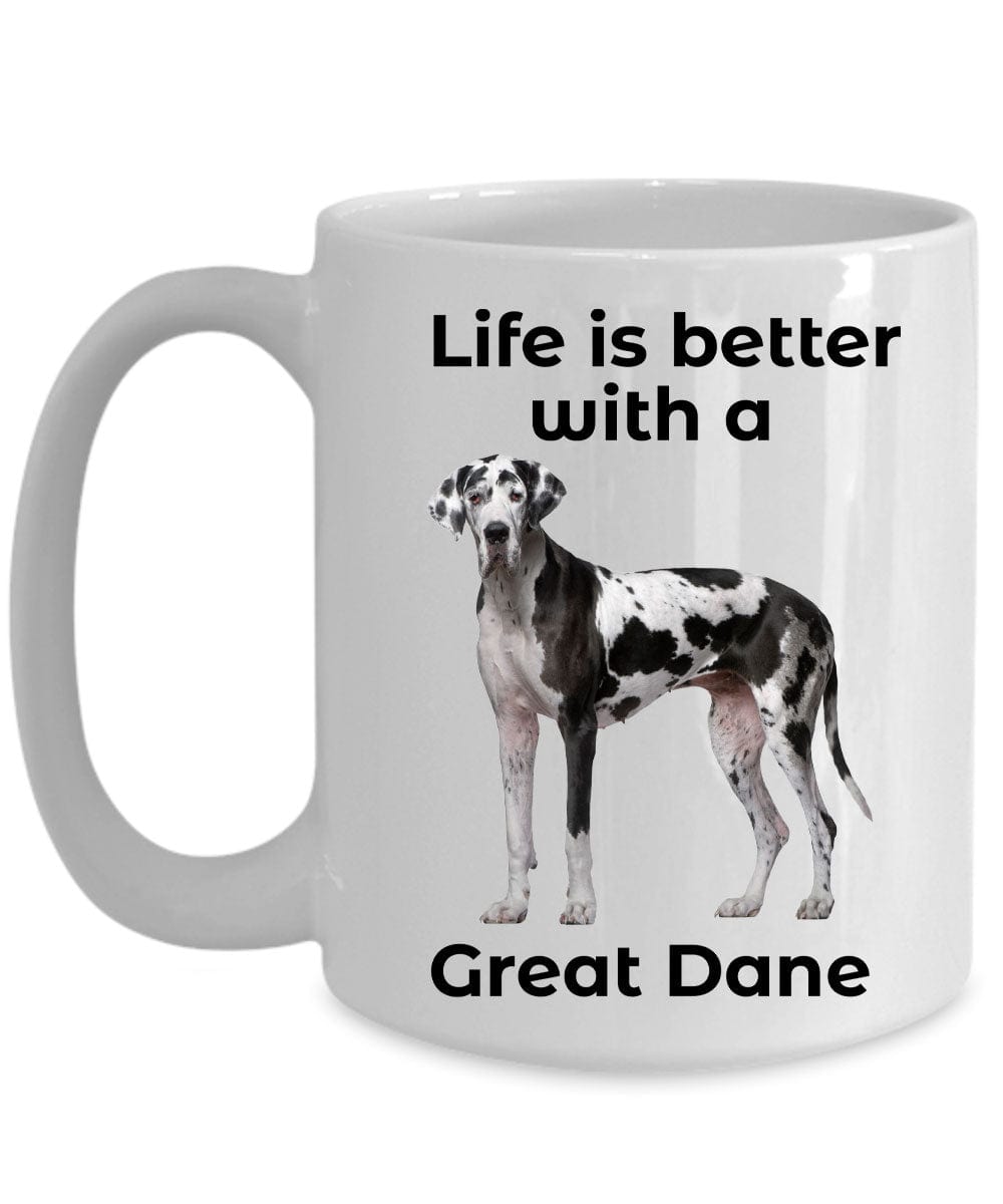 These Great Dane Life is Better ceramic mugs come in both 11 and 15 ounces which is great for coffee, tea, hot chocolate, milk or any beverage.The two tones mugs only come in the 11 oz size.