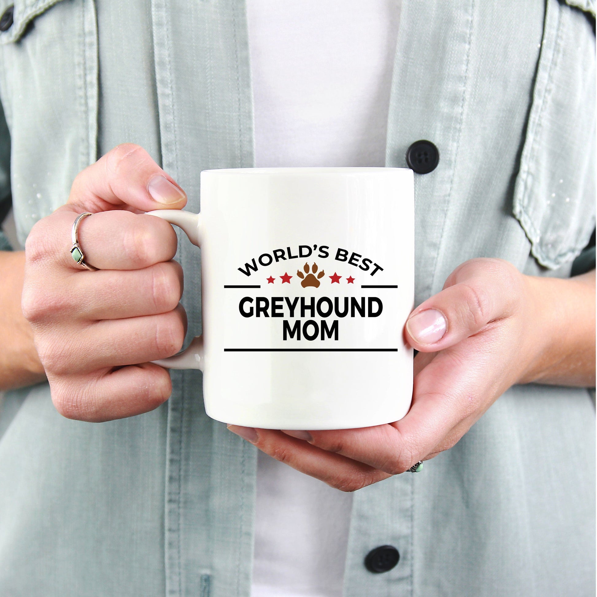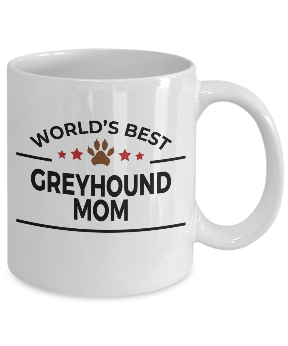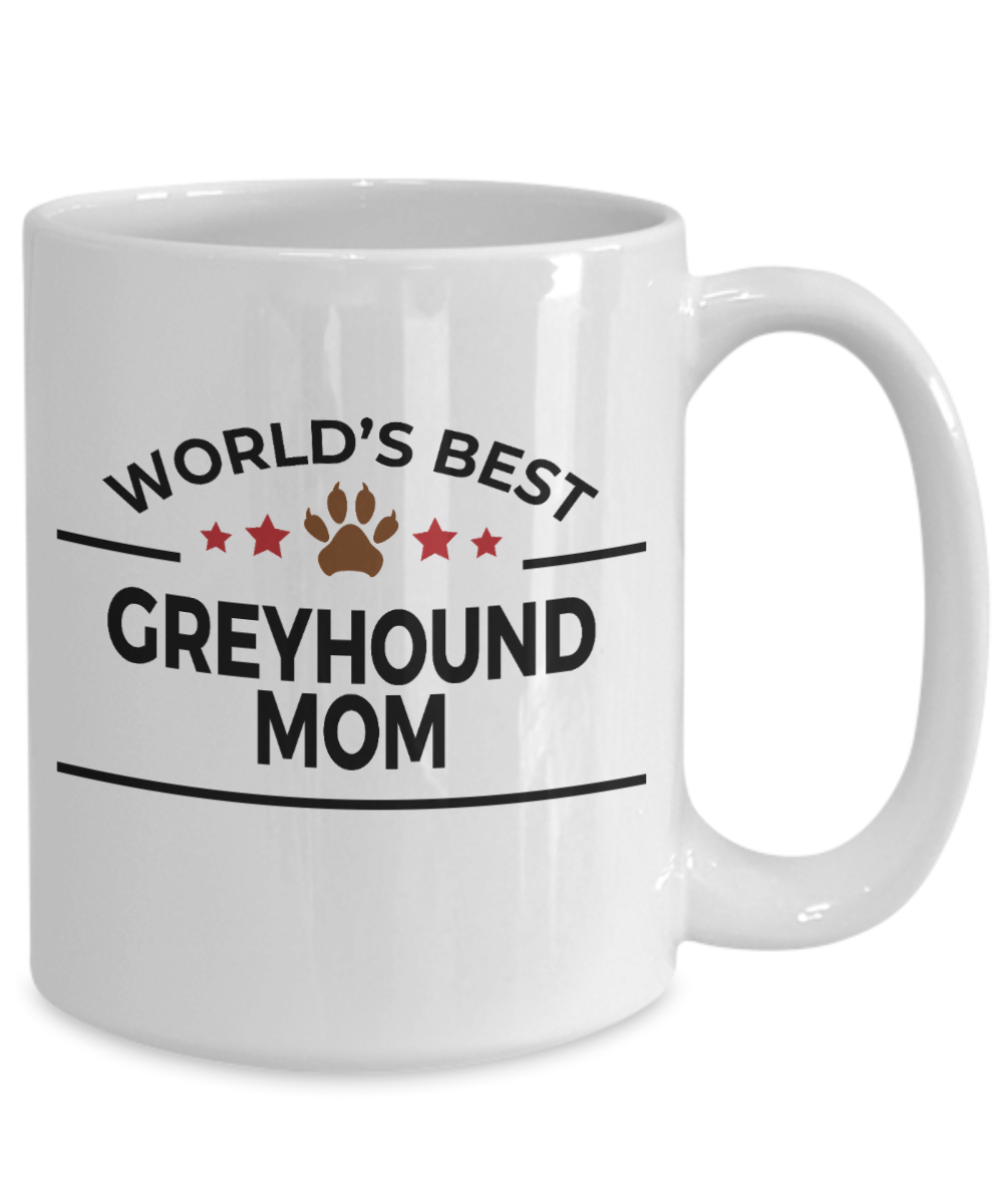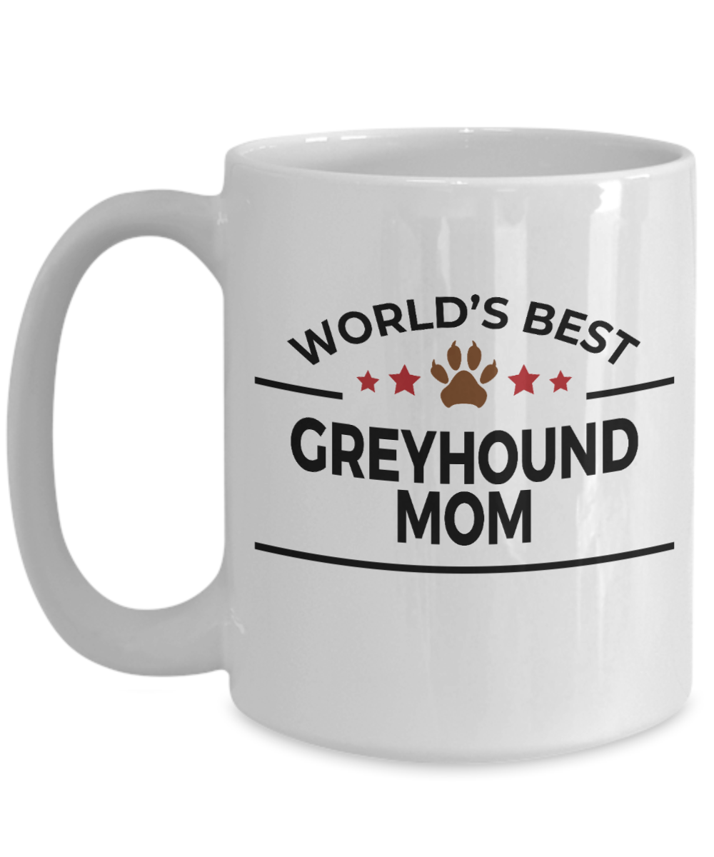 These Greyhound Mom Mugs come in both 11 and 15 ounces which is great for coffee, tea, hot chocolate, milk or any other beverage and has a large C-handle that is easy to grip. The design is printed on both sides so is a suitable gift for right as well as left handed people.