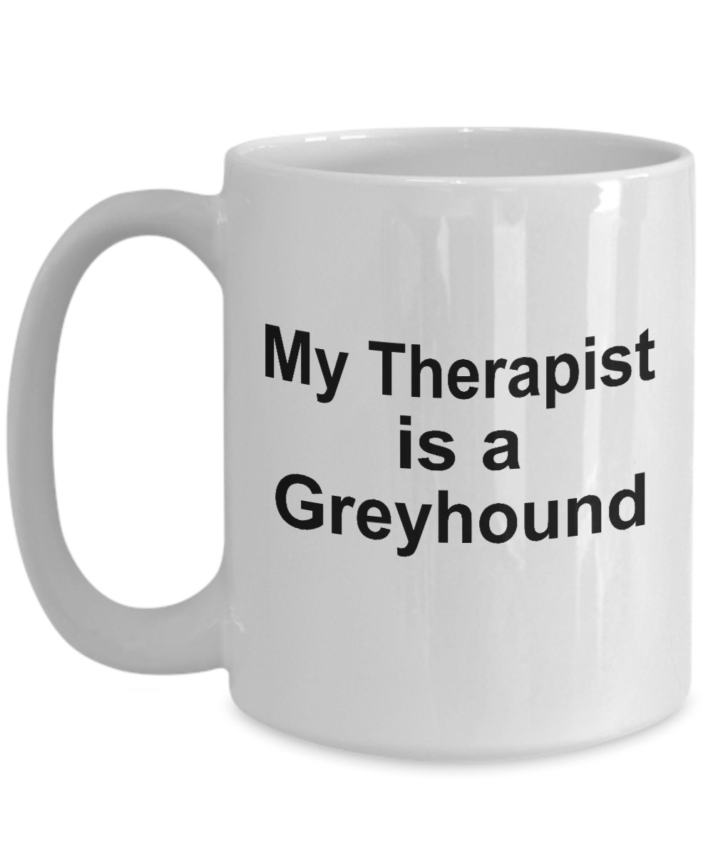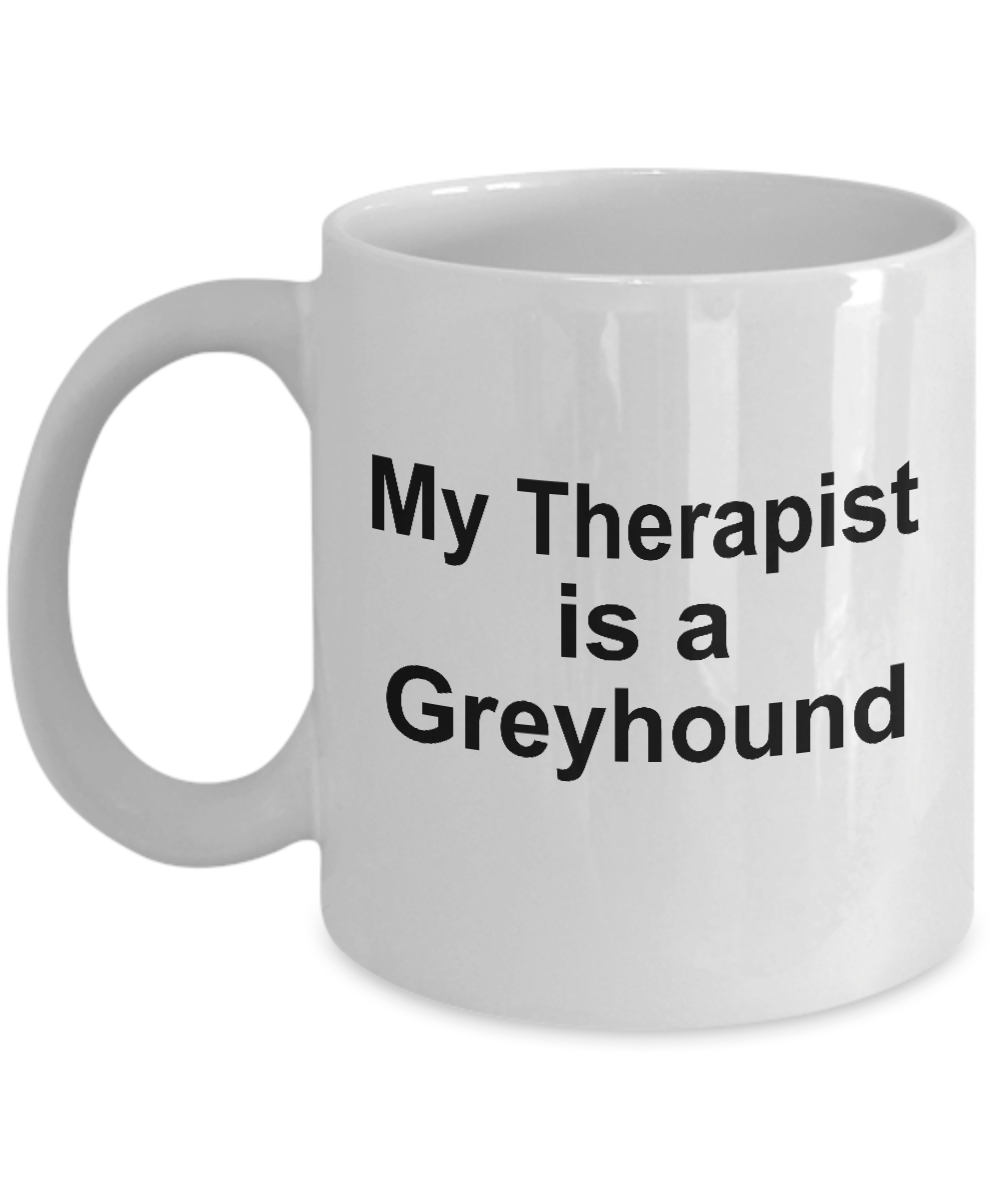 These Greyhound Dog Therapist Mugs come in both 11 and 15 ounces which is great for coffee, tea, hot chocolate, milk or any other beverage and has a large C-handle that is easy to grip. The design is printed on both sides so is a suitable gift for right as well as left handed people.