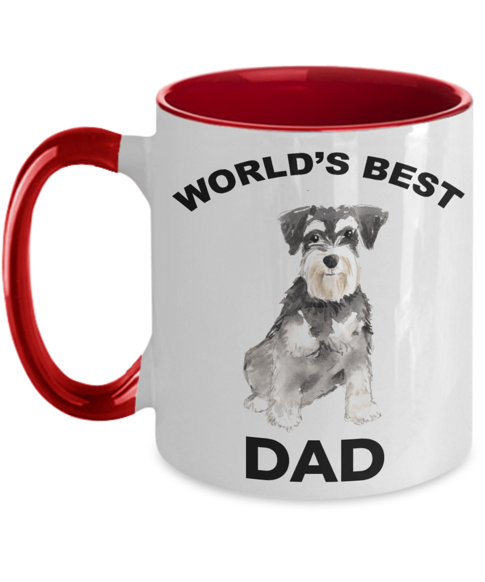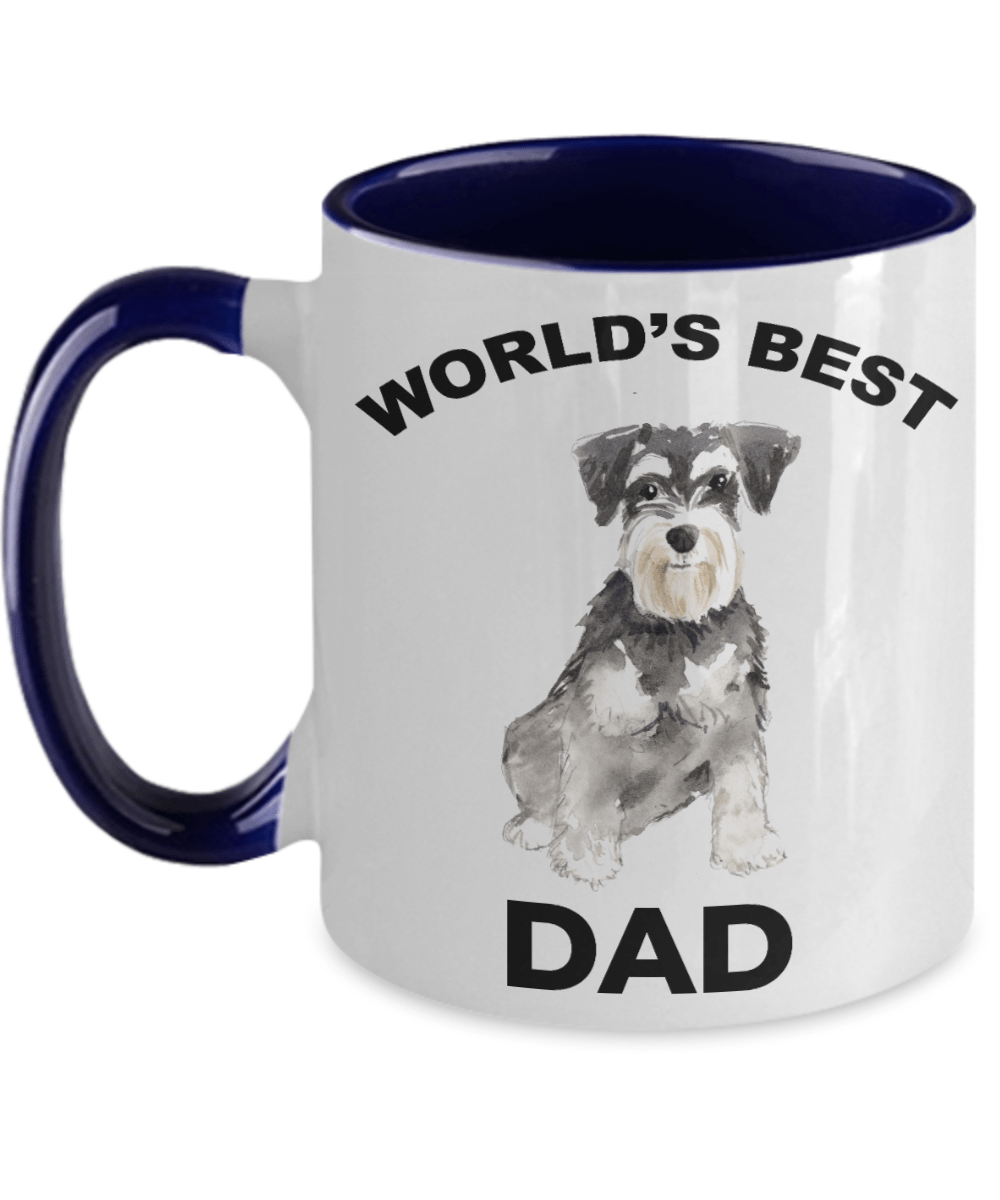 These Miniature Schnauzer Best Dog Dad ceramic mugs come in both 11 and 15 ounces which is great for coffee, tea, hot chocolate, milk or any beverage.The two tones mugs only come in the 11 oz size.