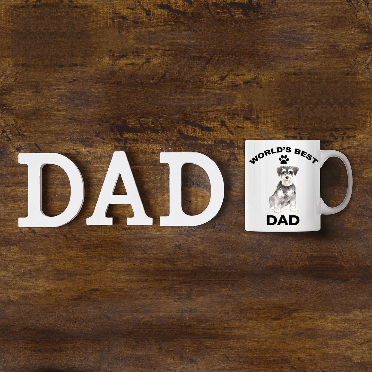 These unique Miniature Schnauzer Best Dad mugs make an awesome gift for family and friends and can be customized for a grandma, grandpa, mom, dad, daughter, son, sister, brother, aunt, uncle, boss, co-worker or best friend. Can be given for an amazing gift for birthday, Christmas, back to school, retirement, wedding, anniversary, Mother's Day, Father's Day, housewarming, get well soon or just because.