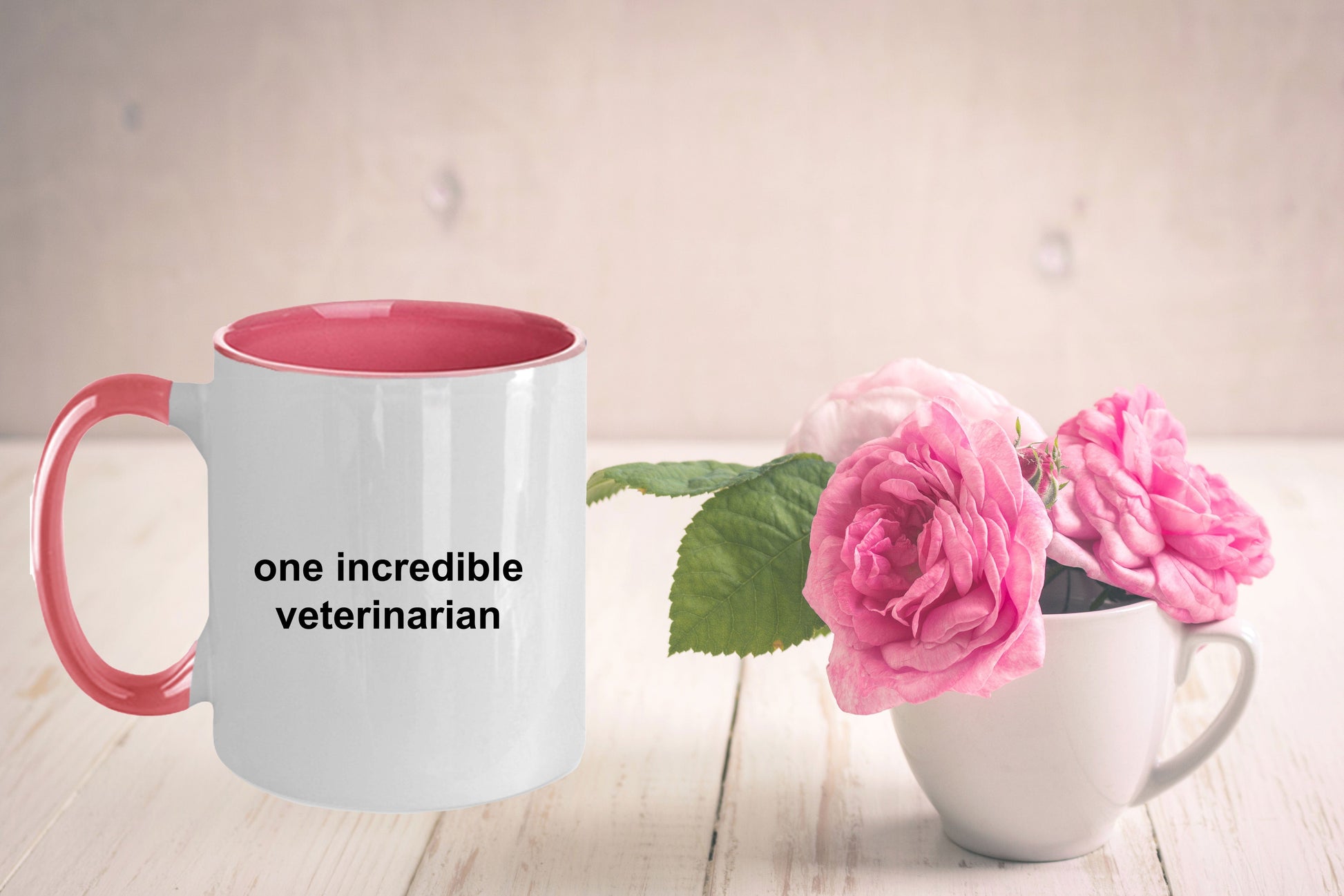 One Incredible Veterinarian ceramic mugs come in both 11 and 15 ounces which is great for coffee, tea, hot chocolate, milk, or any other beverage. The two tones mugs are available in black, red, navy, and pink. Design is also available in the 14oz travel mug and the 20oz and 30oz polar laser-etched color tumblers. Just message me if you want a different product.
