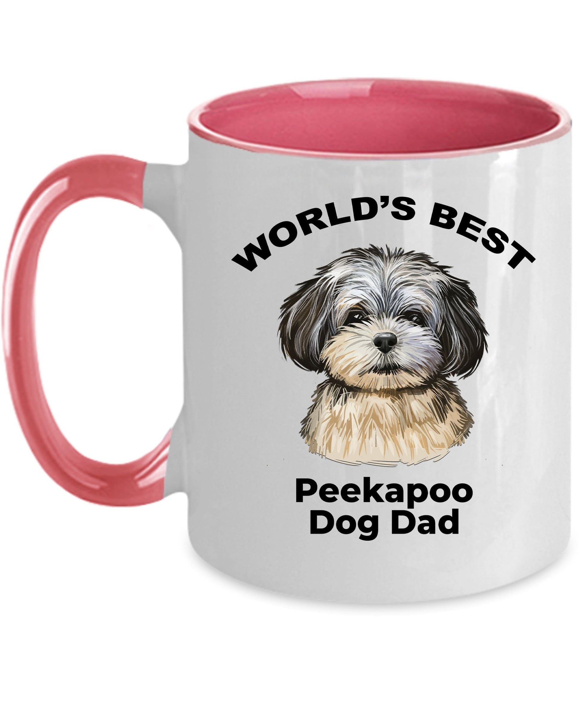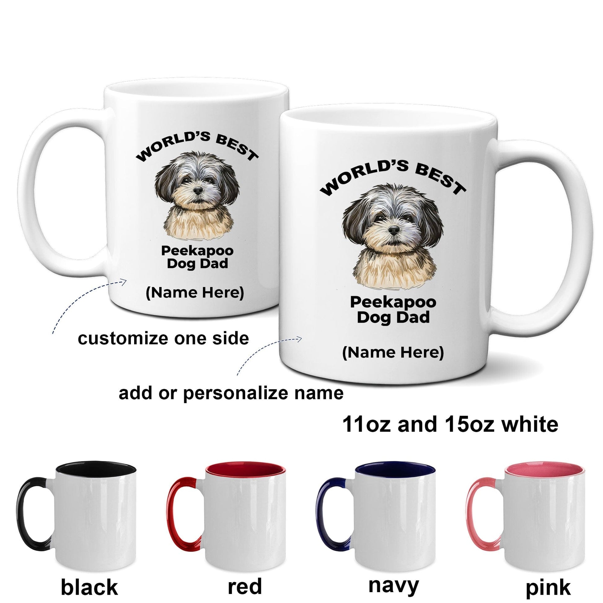 These Peekapoo Best Dog Dad ceramic mugs come in both 11 and 15 ounces which is great for coffee, tea, hot chocolate, milk, or any other beverage. The two tones mugs are available in black, red, navy, and pink. Design is also available in the 14oz travel mug and the 20oz and 30oz polar laser-etched color tumblers. Just message me if you want a different product. The design can also be personalized or changed, such as to grandma, grandpa, brother, sister, etc. Just message me if you want a different product or customization.