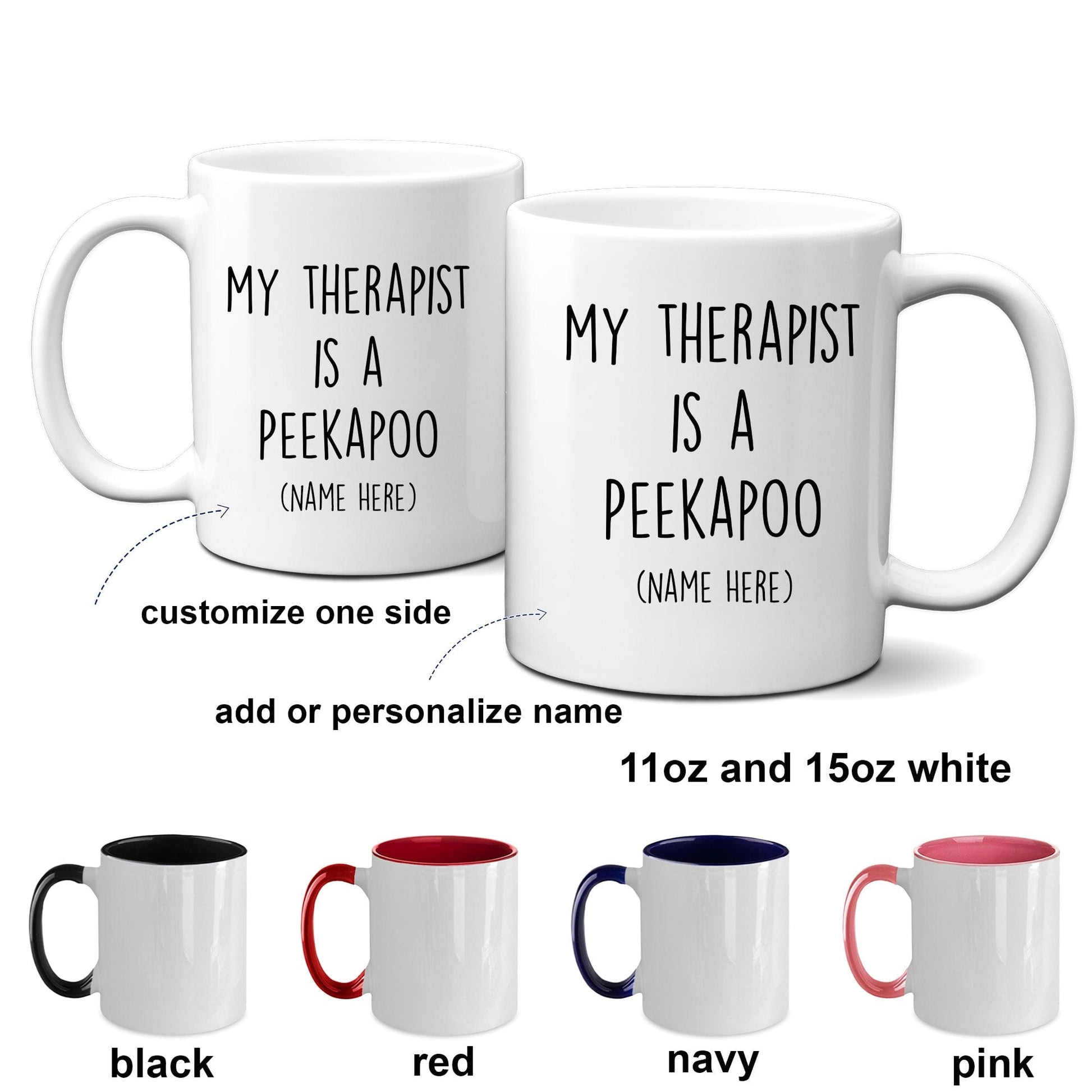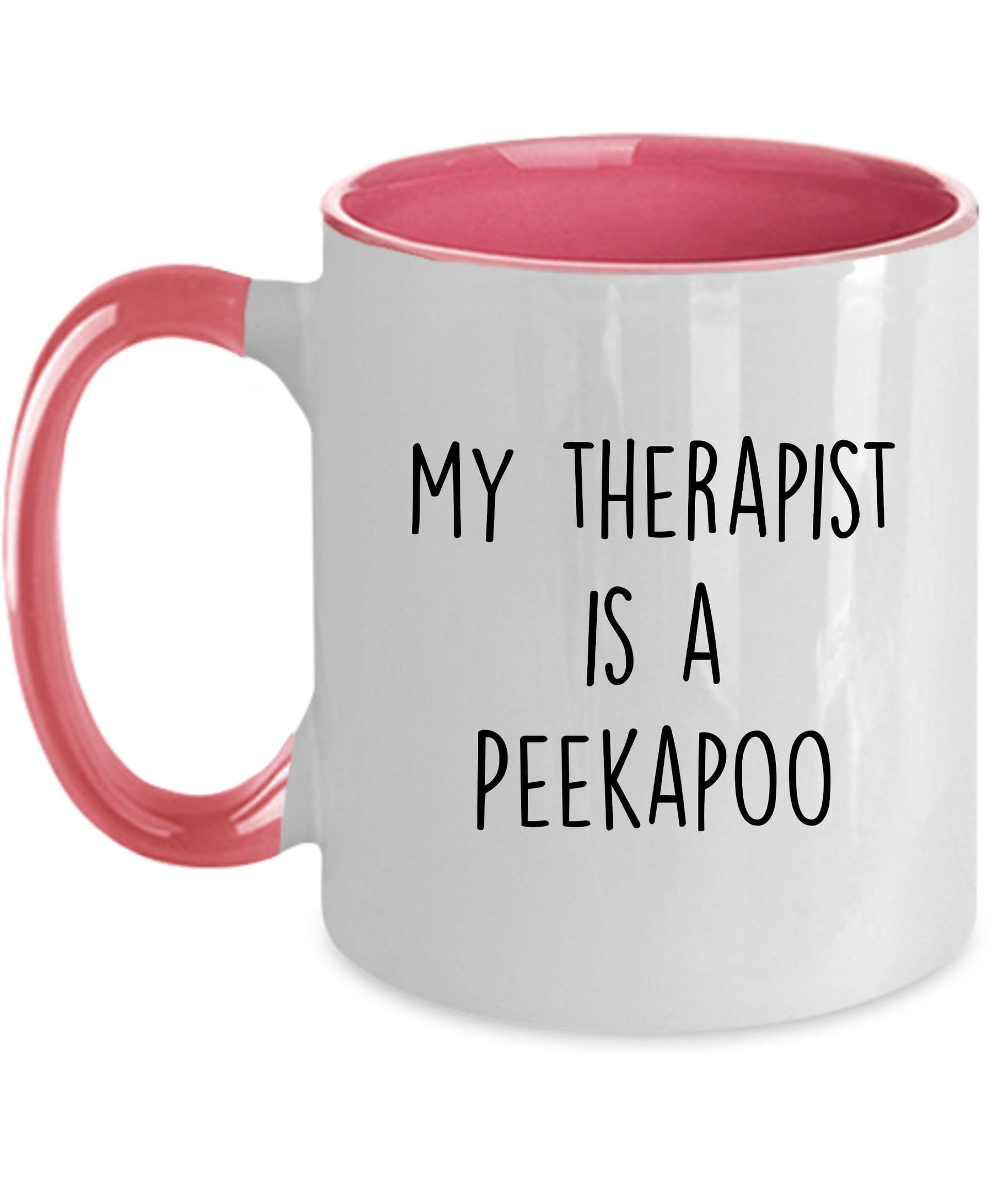 Peekapoo funny dog coffee mug - My Therapist is a Peekapoo. These ceramic mugs come in both 11 and 15 ounces which is great for coffee, tea, hot chocolate, milk, or any other beverage. The two tones mugs are available in black, red, navy, and pink. Design is also available in the 14oz travel mug and the 20oz and 30oz polar laser-etched color tumblers. Just message me if you want a different product. The design can also be personalized or changed, such as to grandma, grandpa, brother, sister, etc. Just message me if you want a different product or customization.