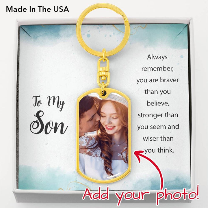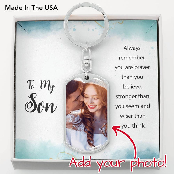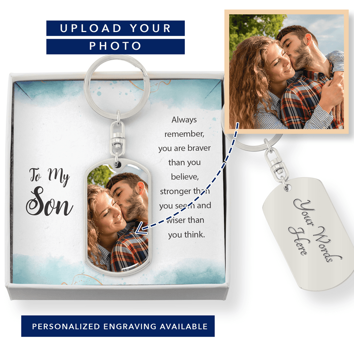 Personalized Gift for Son Engraved Back Photo Upload Military Style Dog Tag Keychain
