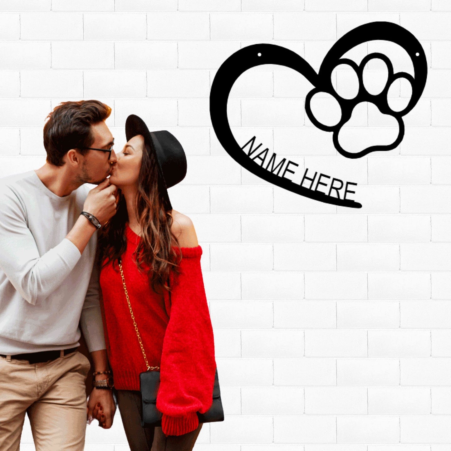 Puppy Love Monogram Custom Steel Wall Sign Art is Laser-cut from mild steel and powder coated so you can hang this item indoors or outdoors. High quality, durable, and will not deteriorate!