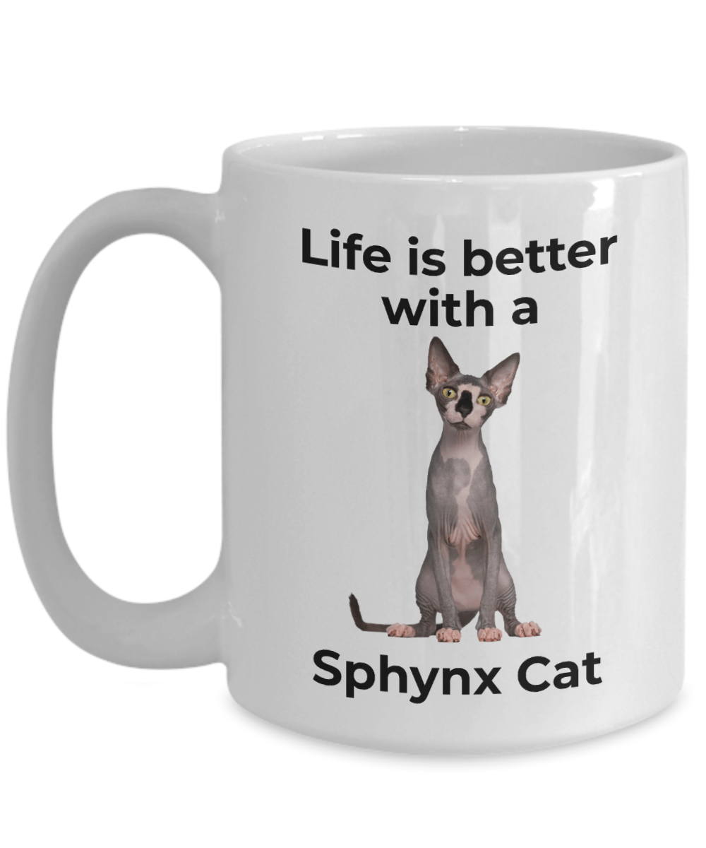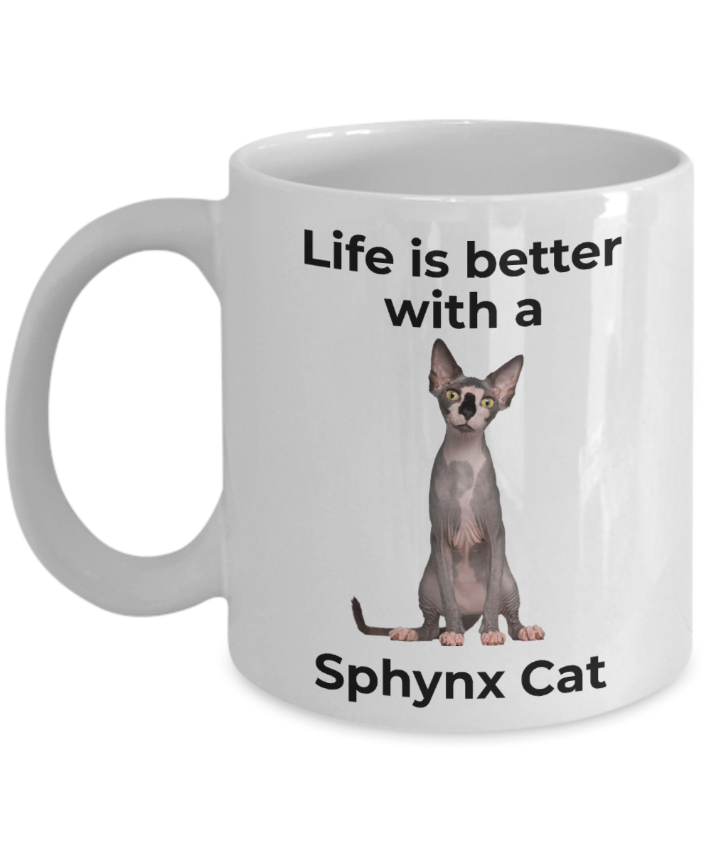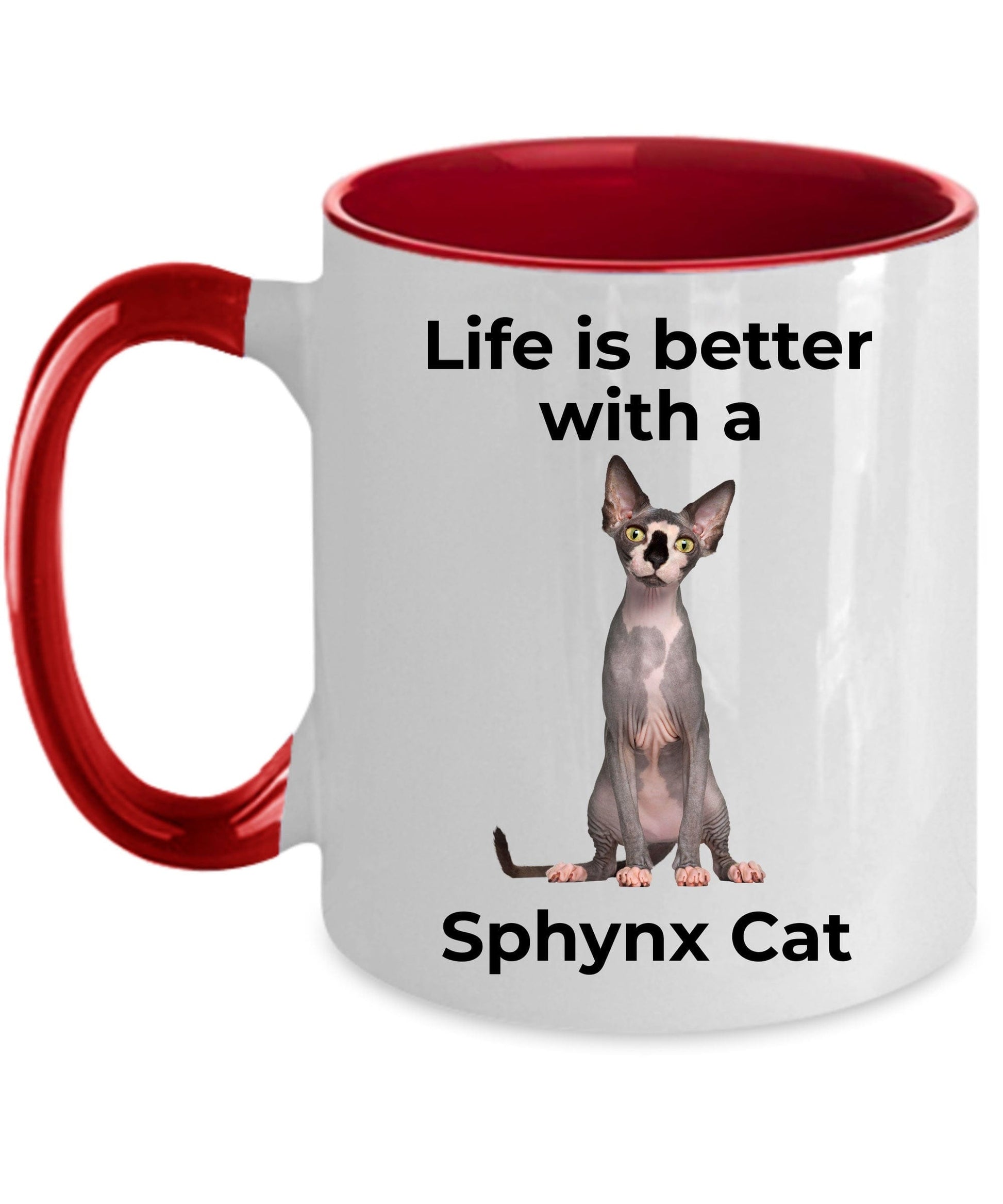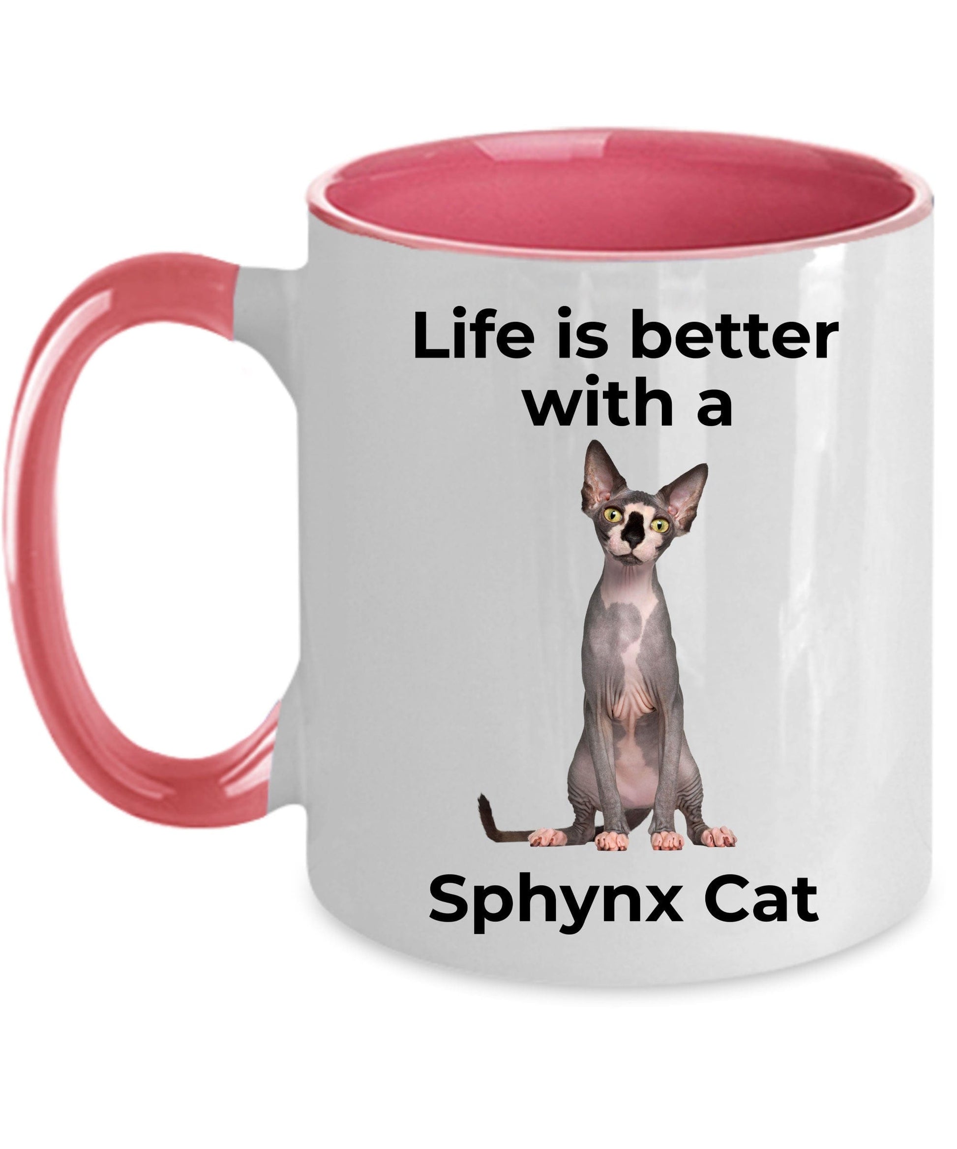 These Sphynx Cat These ceramic mugs come in both 11 and 15 ounces which is great for coffee, tea, hot chocolate, milk, or any other beverage. The two tones mugs are available in black, red, navy, and pink. Design is also available in the 14oz travel mug and the 20oz and 30oz polar laser-etched color tumblers. Just message me if you want a different product.