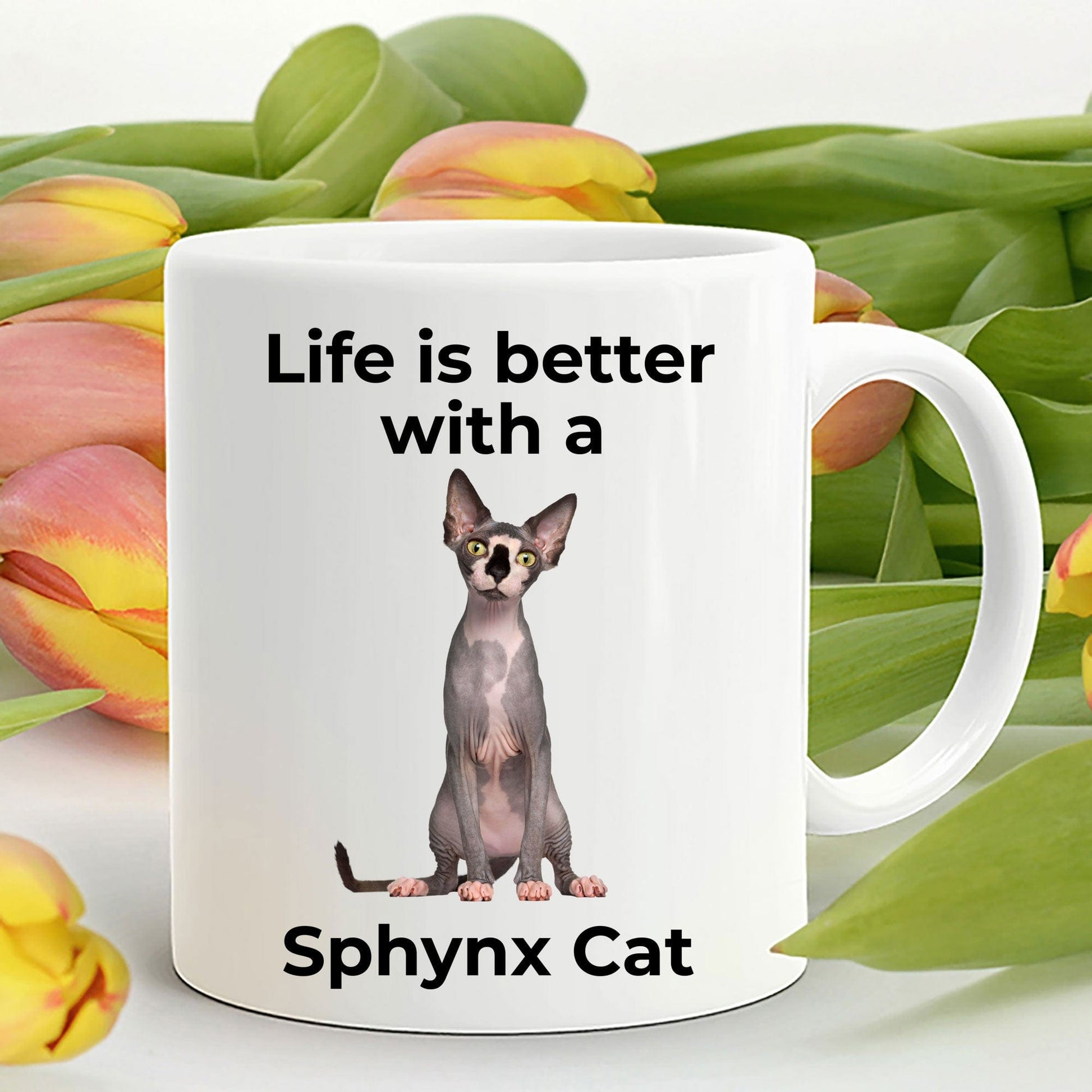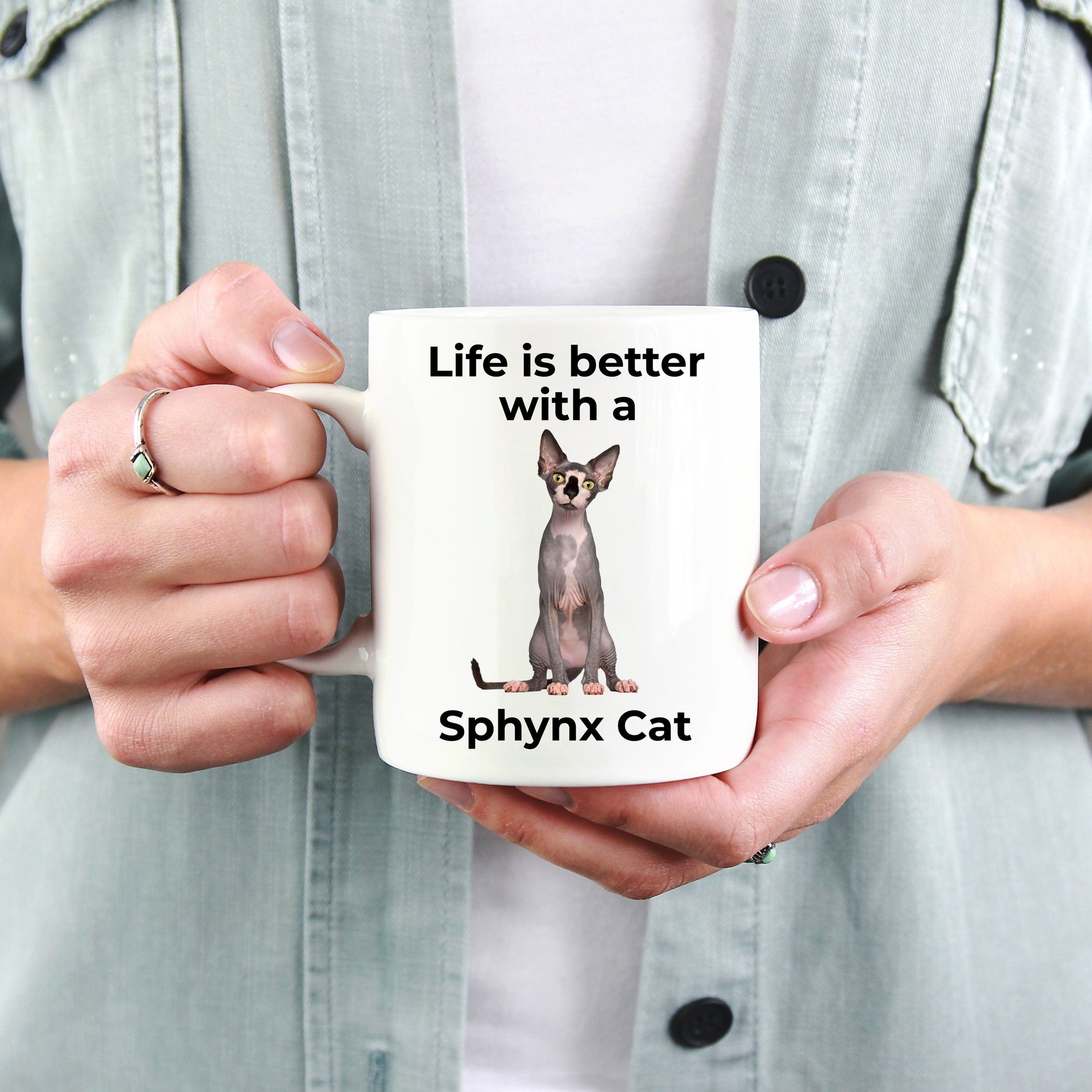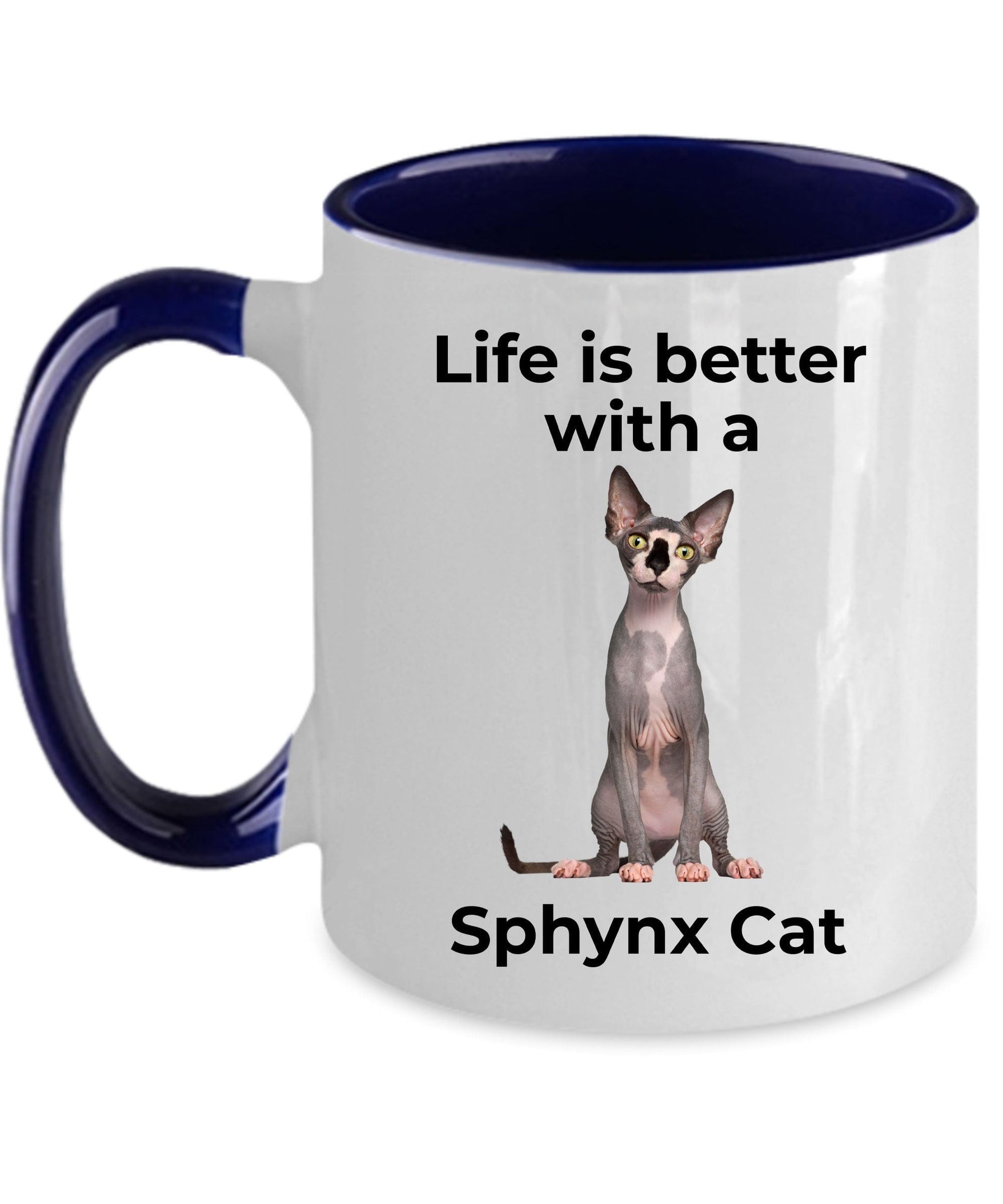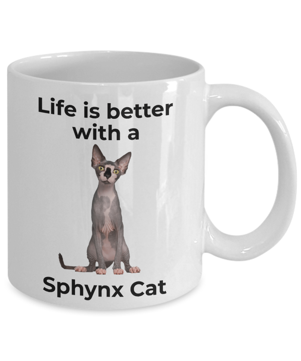These Sphynx Cat These ceramic mugs come in both 11 and 15 ounces which is great for coffee, tea, hot chocolate, milk, or any other beverage. The two tones mugs are available in black, red, navy, and pink. Design is also available in the 14oz travel mug and the 20oz and 30oz polar laser-etched color tumblers. Just message me if you want a different product.
