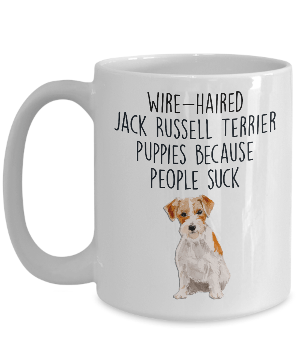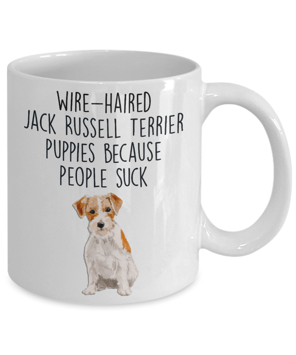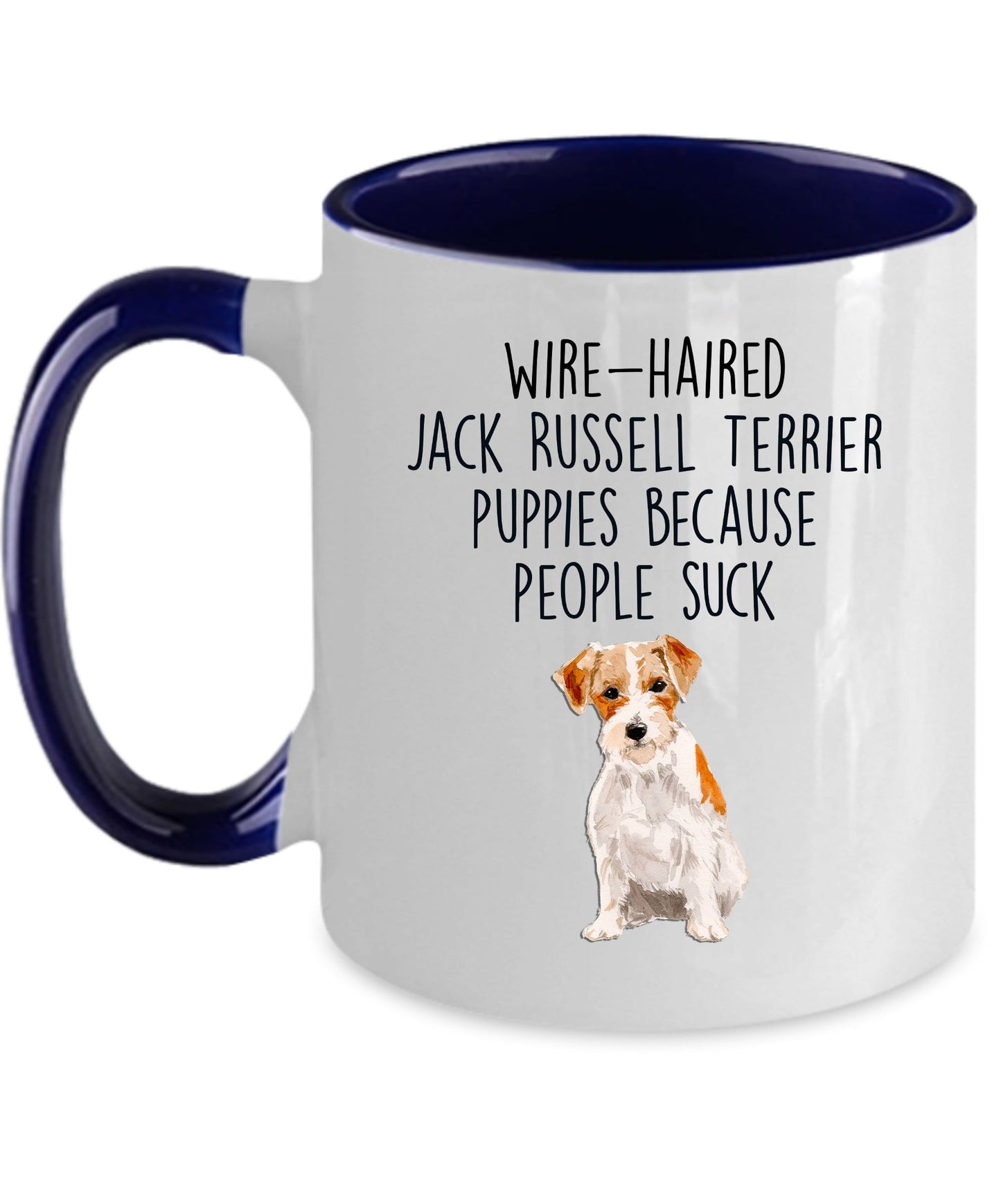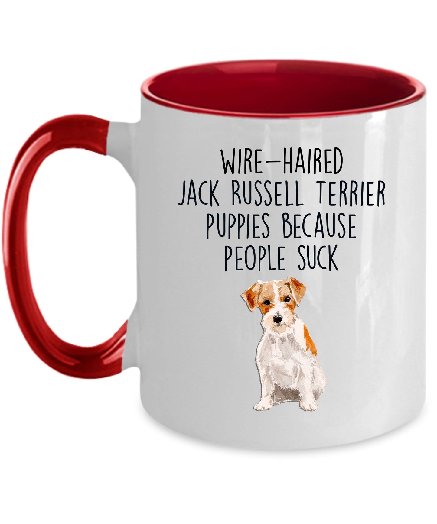 Wire-haired Jack Russell Terrier Puppies Because People Suck Funny Dog Custom ceramic mugs come in both 11 and 15 ounces which is great for coffee, tea, hot chocolate, milk, or any other beverage. The two tones mugs are available in black, red, navy, and pink. Design is also available in the 14oz travel mug and the 20oz and 30oz polar laser-etched color tumblers. Just message me if you want a different product.